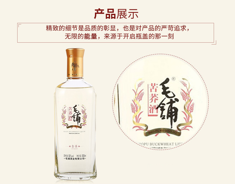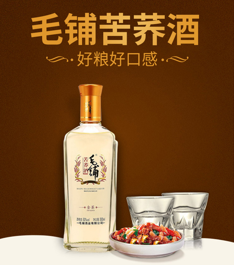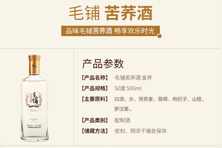 包装:瓶装;容量:500-749mL;香型:其它;产地:湖北;度数:50度及以上;酒精度:50%vol;容量:500ml;产品重量:1200g;包装清单:劲牌 毛铺苦荞酒 金荞 50度 500ml;