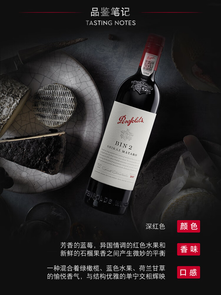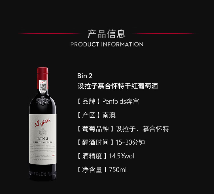 奔富(Penfolds)BIN2 设拉子玛塔罗红葡萄酒 750ml单瓶装 澳大利亚原瓶进口红酒