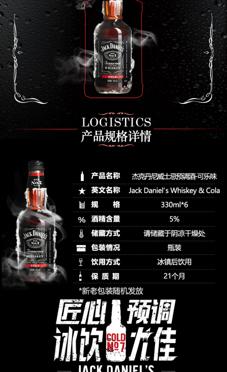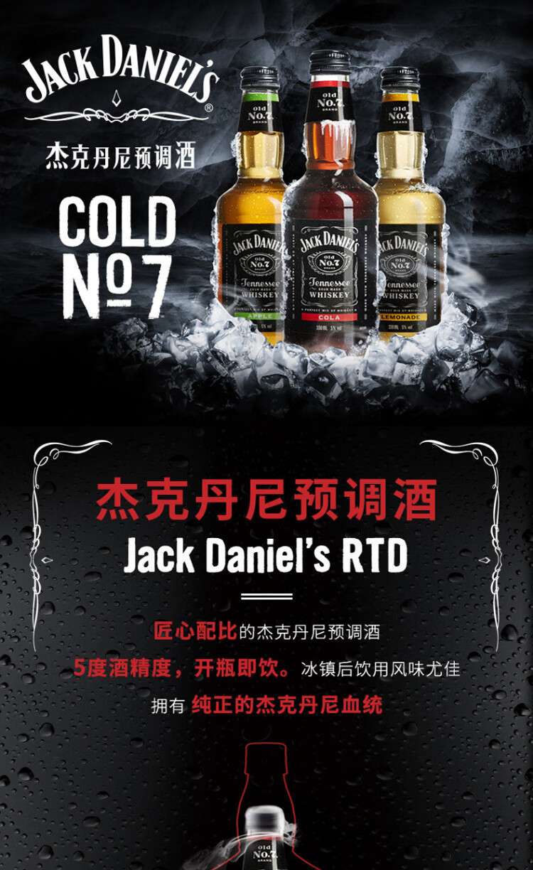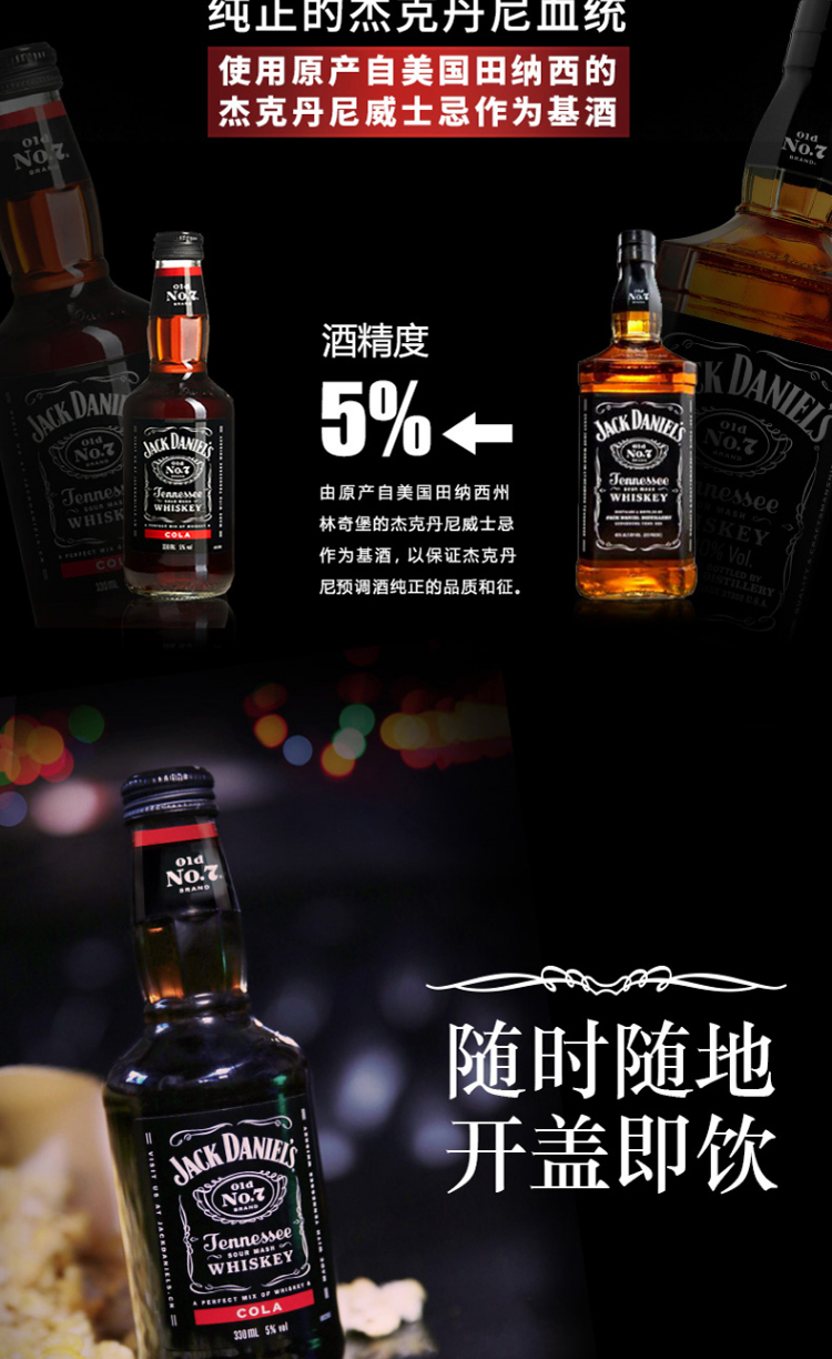 国产/进口:国产;产地:中国大陆;适用场景:商务宴请,家庭聚会,闺蜜私语,亲友馈赠,自斟自饮,情侣约会;包装:礼盒装;容量:200-374mL;原料:水、杰克丹尼田纳西州威士忌、食品添加剂;保质期:21个月;酒精度:5%vol;存储方法:阴凉避光;容量:330mL;产品重量:3.83kg;包装清单:杰克丹尼 威士忌 鸡尾酒 可乐汽水酒330ml*6瓶;