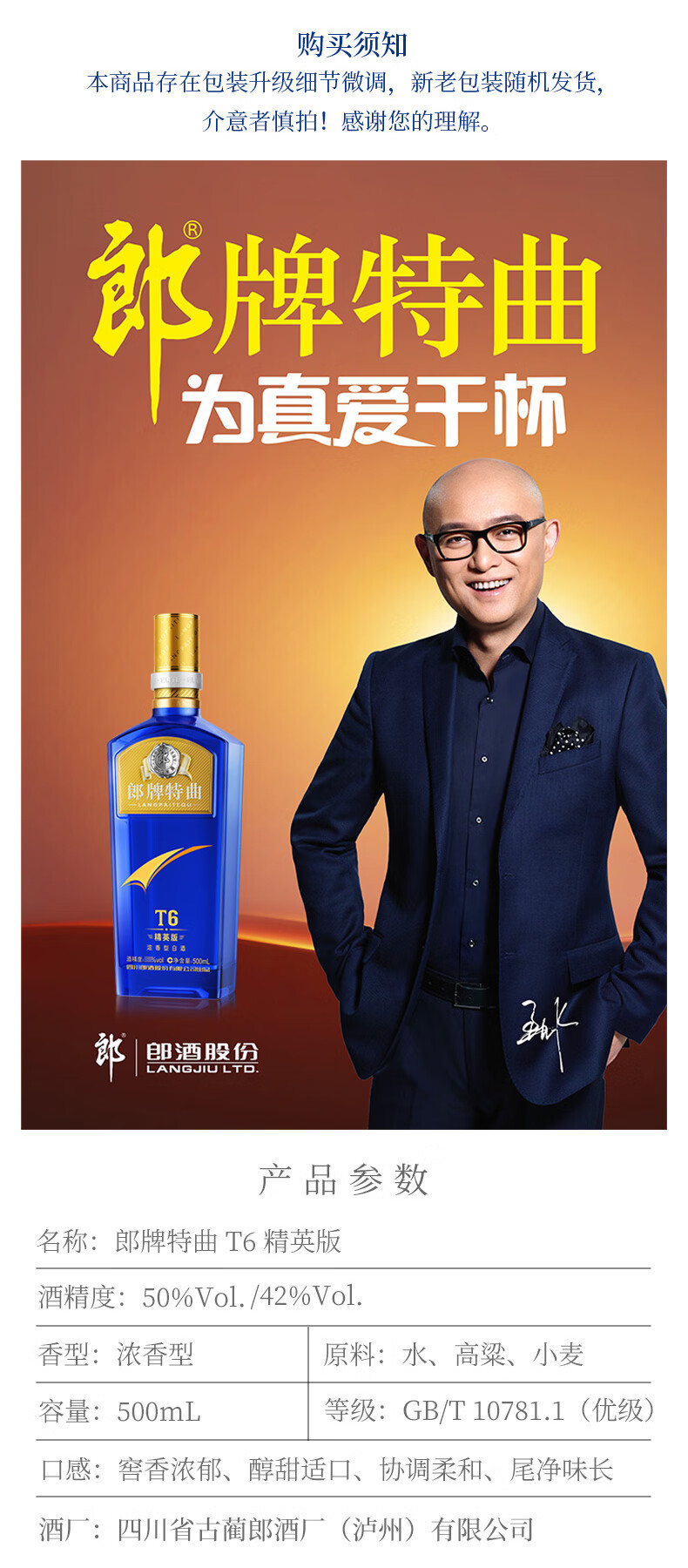包装:整箱装;容量:500-749mL;香型:浓香型;产地:四川;度数:40-49度;酒精度:42%vol;容量:500ml *6;产品重量:10000g;包装清单:郎酒 郎牌特曲 T6精英版 42度 500ml*6瓶 整箱装*1箱;