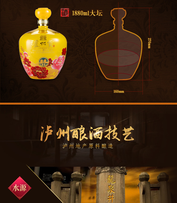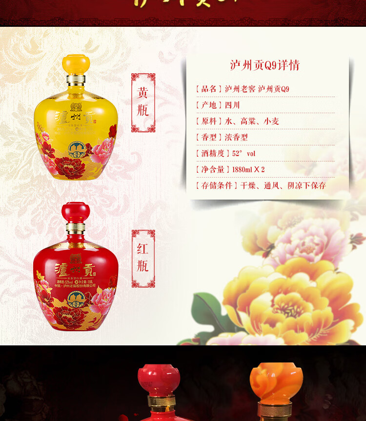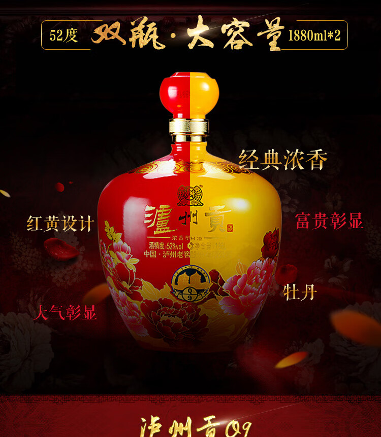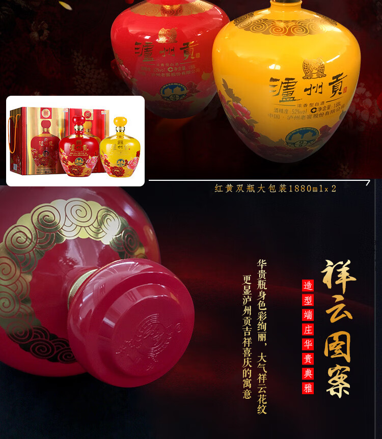 包装:整箱装;容量:750mL及以上;香型:浓香型;产地:四川;度数:50度及以上;酒精度:52%vol;容量:3760ml;产品重量:7300g;包装清单:1;