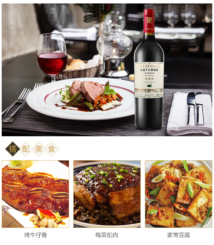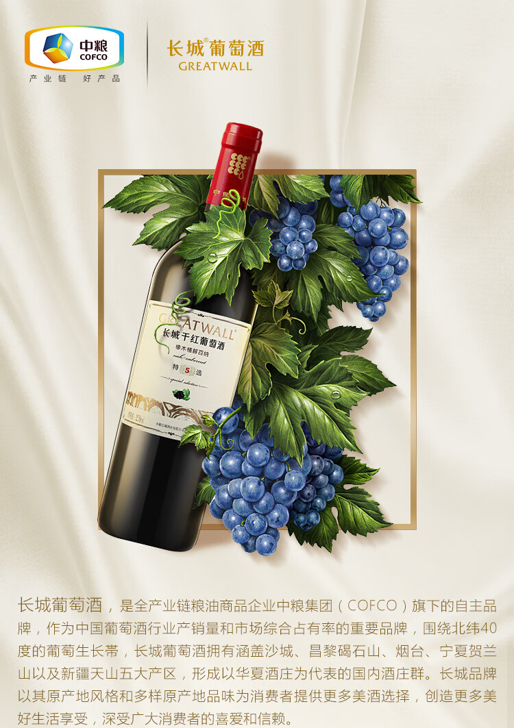 长城 特选5年橡木桶解百纳干红葡萄酒 750ml*6瓶 整箱装 中粮出品