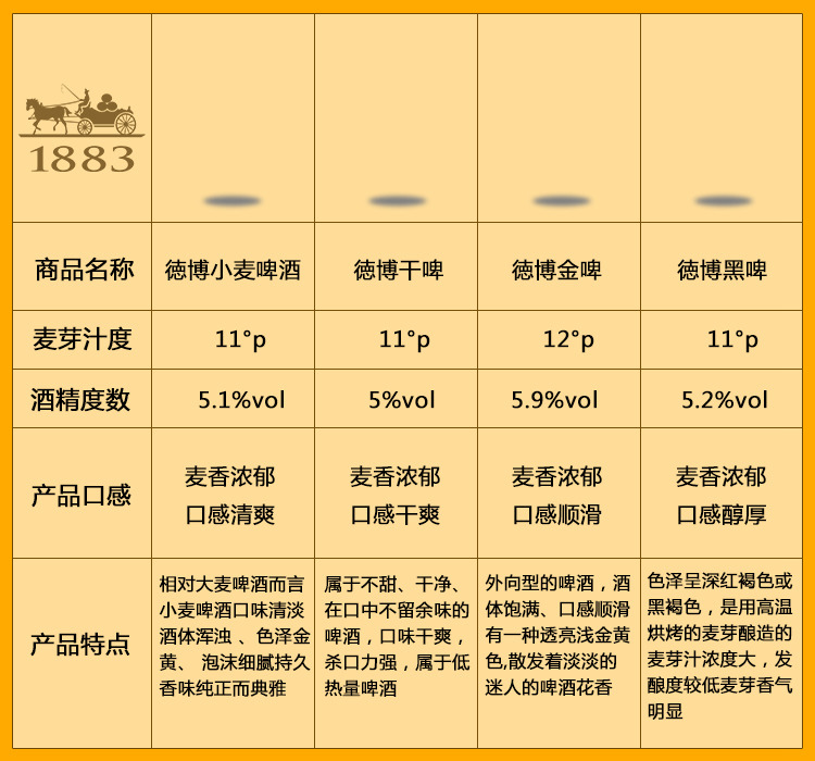 国产/进口:进口;产地:德国;适用场景:家庭聚会,礼节拜访,情侣约会,自斟自饮,派对必备,烧烤撸串,酒吧夜店;包装:听装;容量:500mL;类别:黄啤酒;容量:500ml;产品重量(kg):12.7;包装:听装;原料:水、大麦芽、啤酒花浸膏;存储方法:避光,阴凉干燥处保存, 冷藏后饮用口感更佳;原麦汁浓度:12°p;酒精度:5.9%vol;国产/进口:进口;保质期:15个月;原产地:德国;类别:黄啤酒;包装清单:德博金啤酒500ml*24*1;
