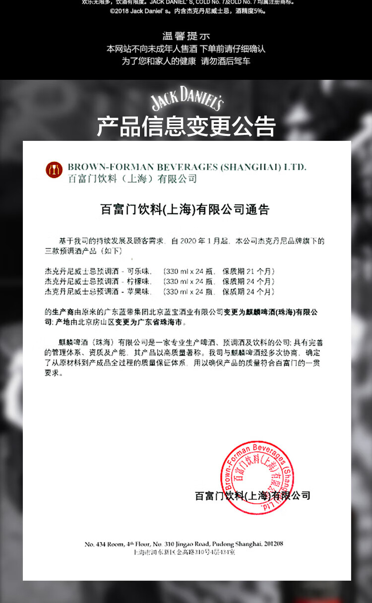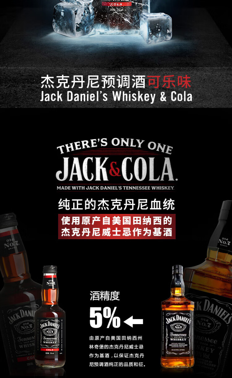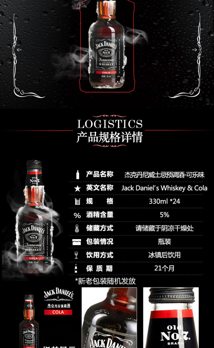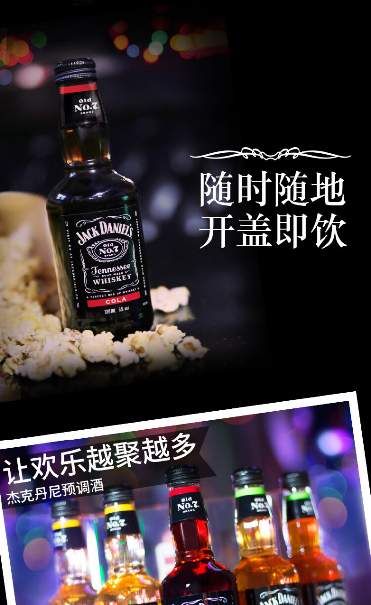 国产/进口:国产;产地:中国大陆;适用场景:商务宴请,家庭聚会,闺蜜私语,亲友馈赠,自斟自饮,情侣约会;包装:其它;容量:200-374mL;原料:水、白砂糖、杰克丹尼田纳西州威士忌、食品添加剂;保质期:21个月;酒精度:5%vol;存储方法:阴凉避光;容量:330mL;产品重量:14.68kg;包装清单:杰克丹尼威士忌可乐汽水酒330ml*24瓶;