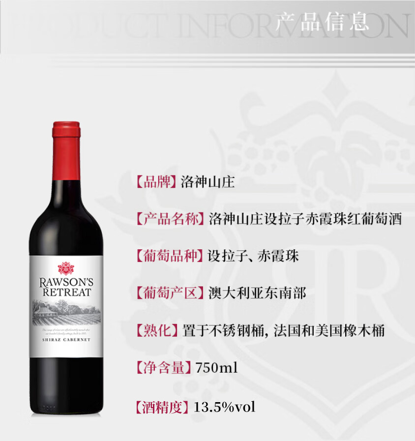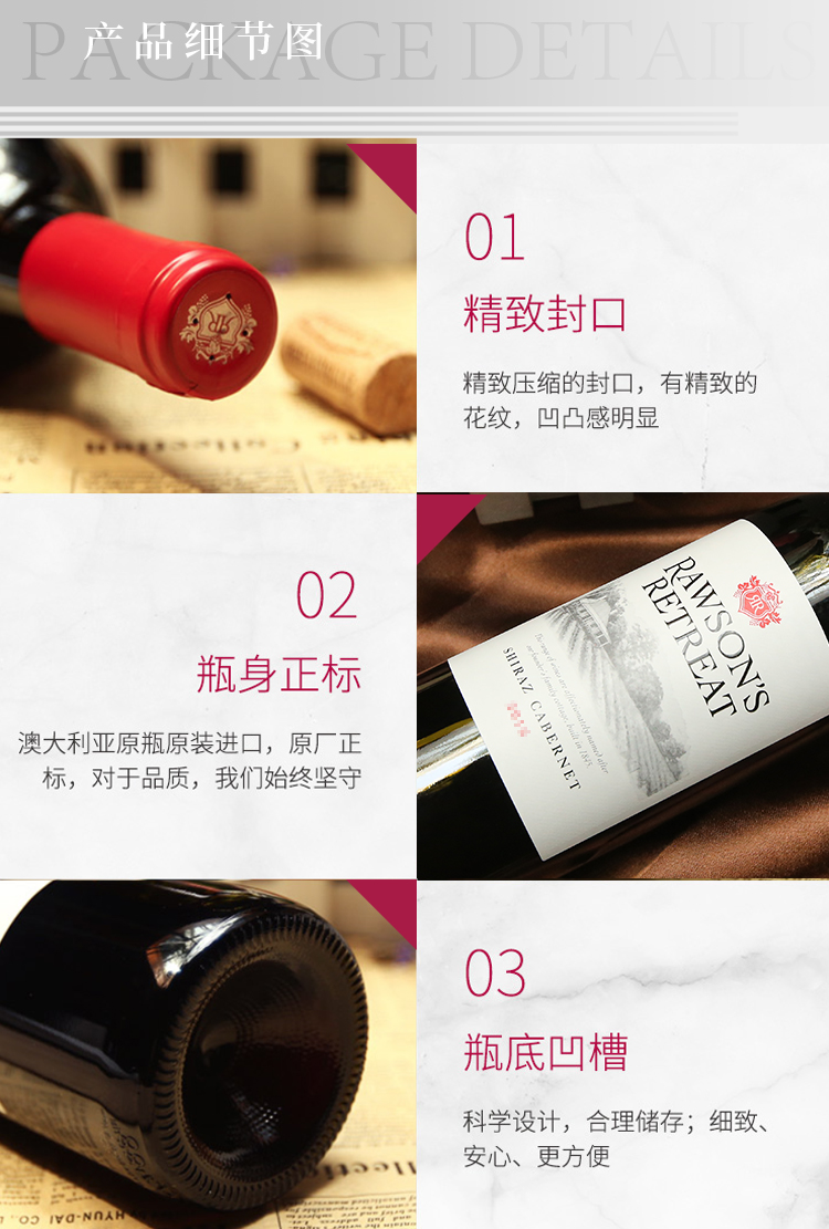 颜色:宝石红;口感:饱满;特性:精品葡萄酒;国产/进口:进口;适用场景:商务宴请,婚礼婚宴,家庭聚会,派对活动;包装:整箱装;酸度:中酸;类别:红葡萄酒;葡萄品种:混合(Blending),西拉/设拉子(Syrah/Shiraz),赤霞珠(Cabernet Sauvignon);类型:静止酒;香型:香料,花香,果香;产地:澳大利亚;容量:750mL;甜度:干型;保质期:无;酒精度:13.5%vol;原产地:澳大利亚;存储方法:平躺存放;容量:750ml;产品重量:7.39kg;包装清单:葡萄酒x6瓶整箱装;