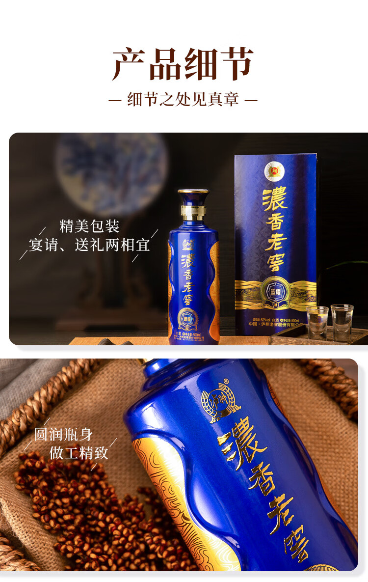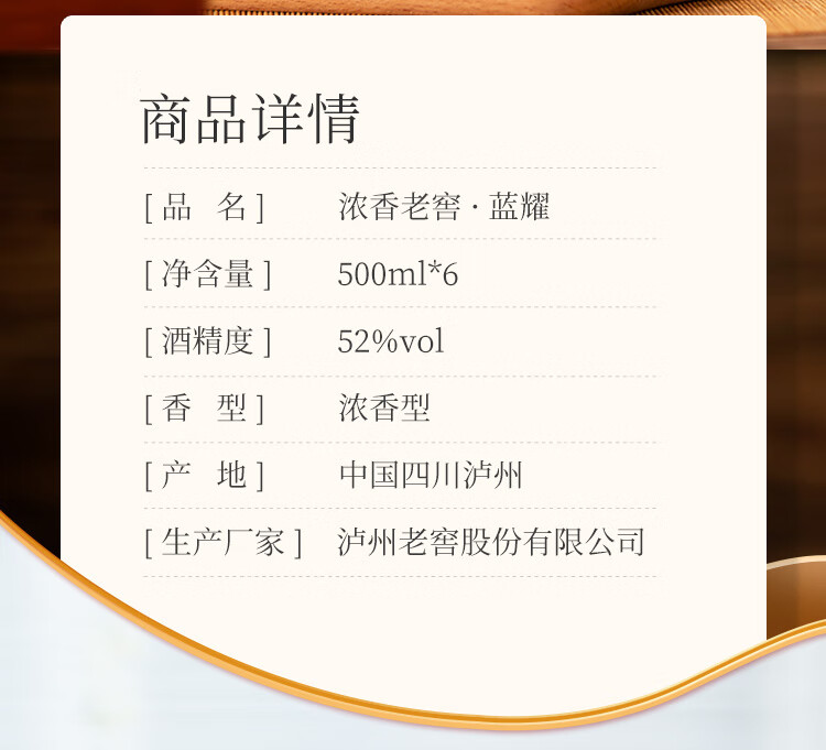 包装:整箱装;容量:500-749mL;香型:其它;产地:四川;度数:50度及以上;酒精度:52%vol;容量:500ml*6;产品重量:8400g;包装清单:500ml*6瓶;