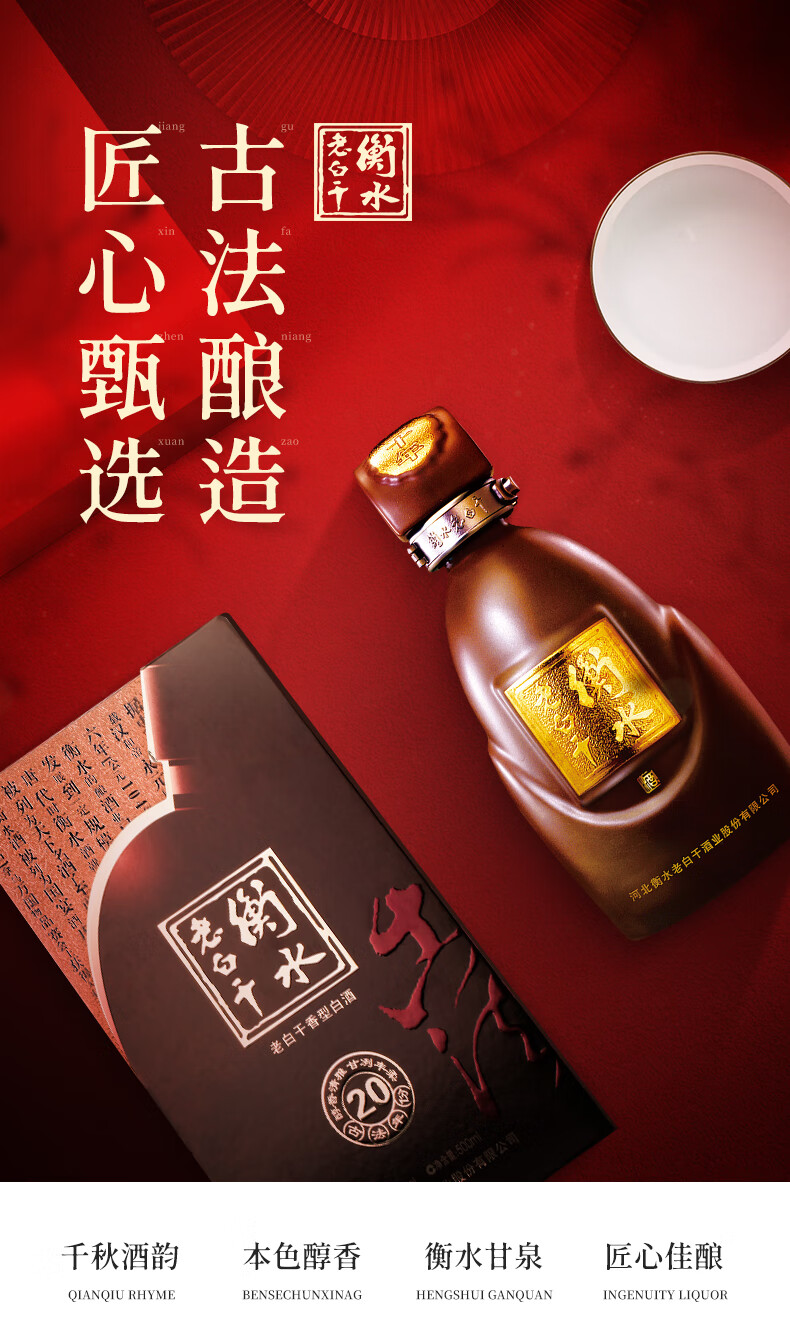 包装:礼盒装;容量:500-749mL;香型:老白干香型;产地:河北;度数:50度及以上;酒精度:67%vol;容量:500ml;产品重量:1610g;包装清单:衡水老白干67度古法二十年500ml*1瓶;