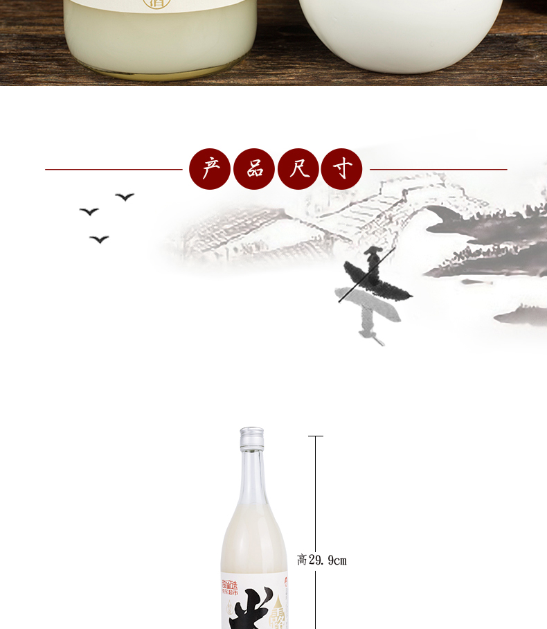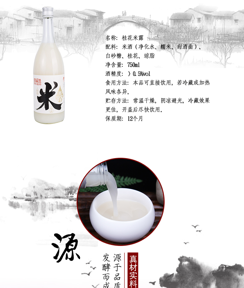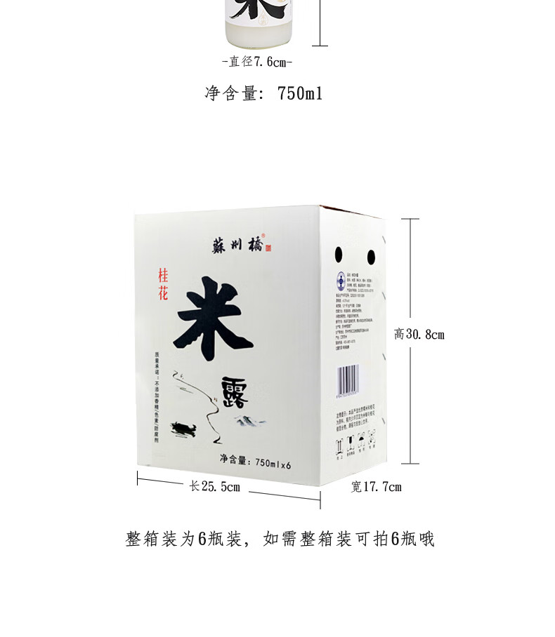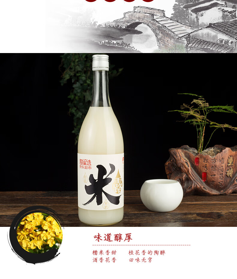 适用场景:商务宴请,自斟自饮,家庭聚会,礼节拜访;包装:瓶装;容量:500-999mL;度数:10度以下;产地:江苏;保质期:365天;酒精度:>0.5%vol;存储方法:常温干燥 阴凉避光;容量:750mL;产品重量:1.35kg;包装清单:苏州桥米露750ml*1;