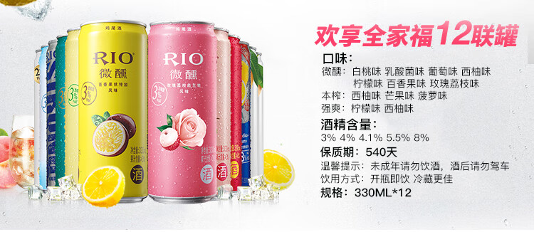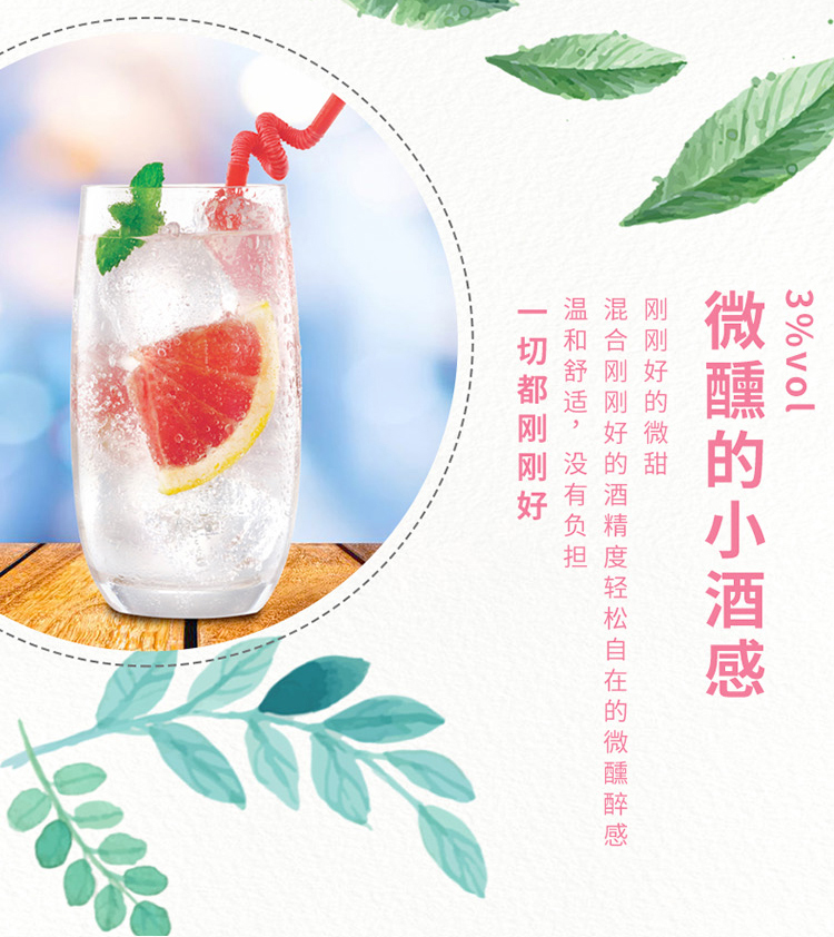 国产/进口:国产;产地:中国大陆;适用场景:家庭聚会,商务宴请,情侣约会,自斟自饮,亲友馈赠,闺蜜私语;包装:其它;容量:200-374mL;原料:水、果葡糖浆、白砂糖、食用香精等;保质期:540天;酒精度:3%vol;存储方法:请置于阴凉干燥处,避免高温和阳光直晒,禁止加热或0℃以下冷冻,切勿撞击。;容量:330mL;产品重量:4.3kg;包装清单:(微醺7种口味+强爽2种+本榨3种)或(微醺3度白桃*1+微醺3度柠檬*1+微醺3度葡萄*1+微醺3度西柚*1+微醺3度乳酸菌*1+微醺3度百香果*1+微醺3度玫瑰荔枝*1+萌檬红茶*1+乐橘乌龙*1+本榨菠萝*1+本榨红西柚*1+本榨芒果*1);