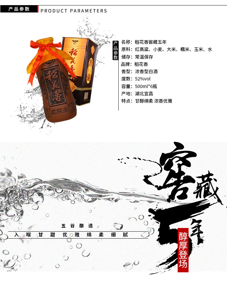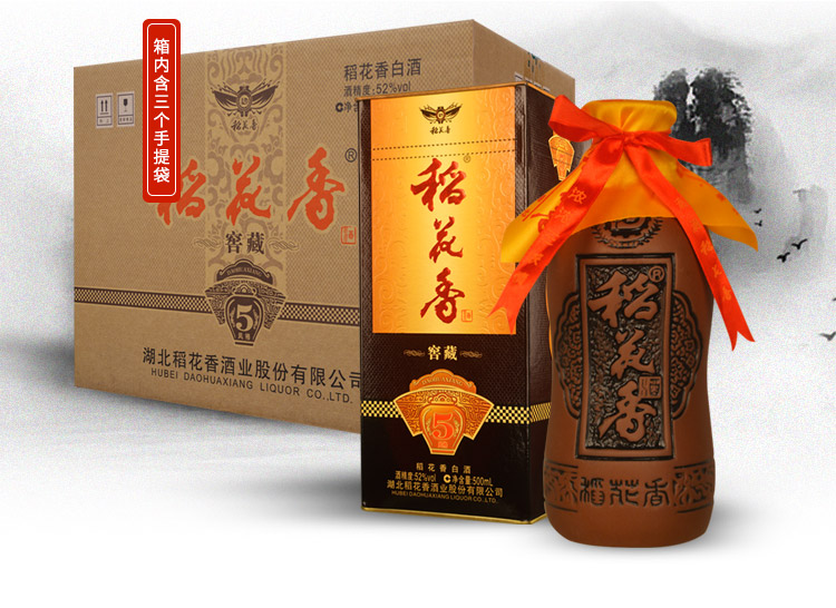 包装:整箱装;容量:500-749mL;香型:浓香型;产地:湖北;度数:50度及以上;酒精度:52%vol;容量:500ml;产品重量:8220g;包装清单:外箱*1 礼品盒*6 礼品袋×3 500ml×6瓶;