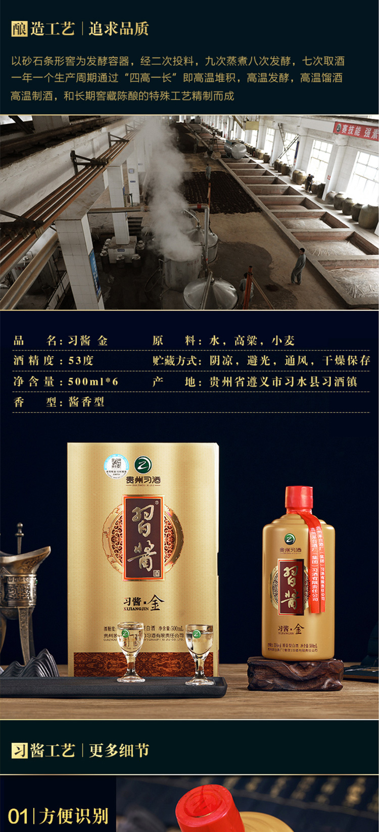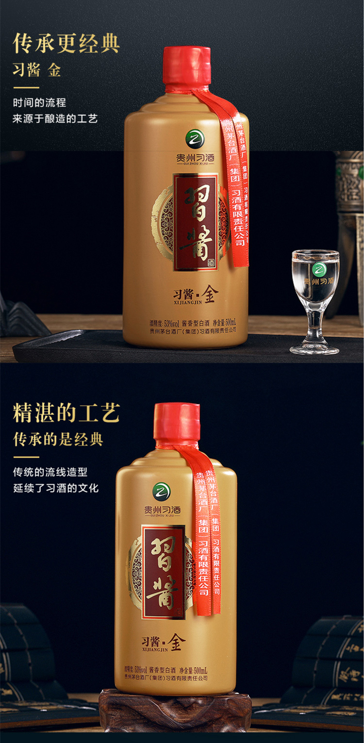 包装:整箱装;容量:500-749mL;香型:酱香型;产地:贵州;度数:50度及以上;酒精度:53%vol;容量:3000ml;产品重量:10.71g;包装清单:习酒 习酱 金 53度500ml*6瓶 整箱装*1;