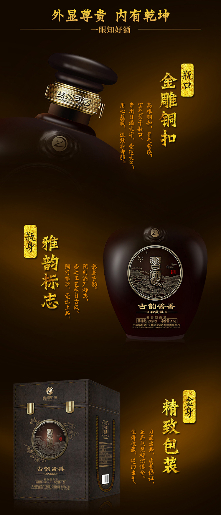 包装:礼盒装;容量:750mL及以上;香型:酱香型;产地:贵州;度数:50度及以上;酒精度:53%vol;容量:1.5l;产品重量:3920g;包装清单:1.5L*1瓶;