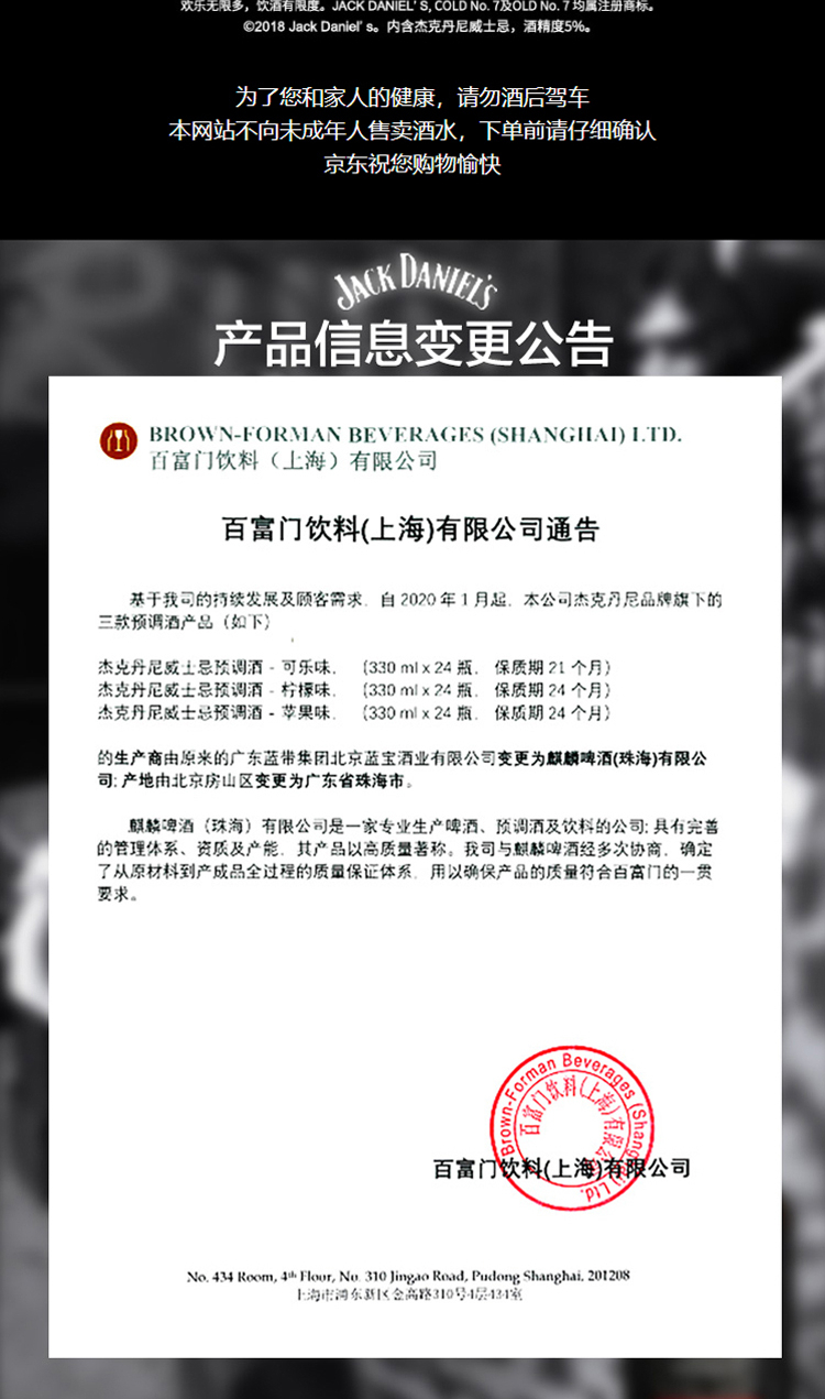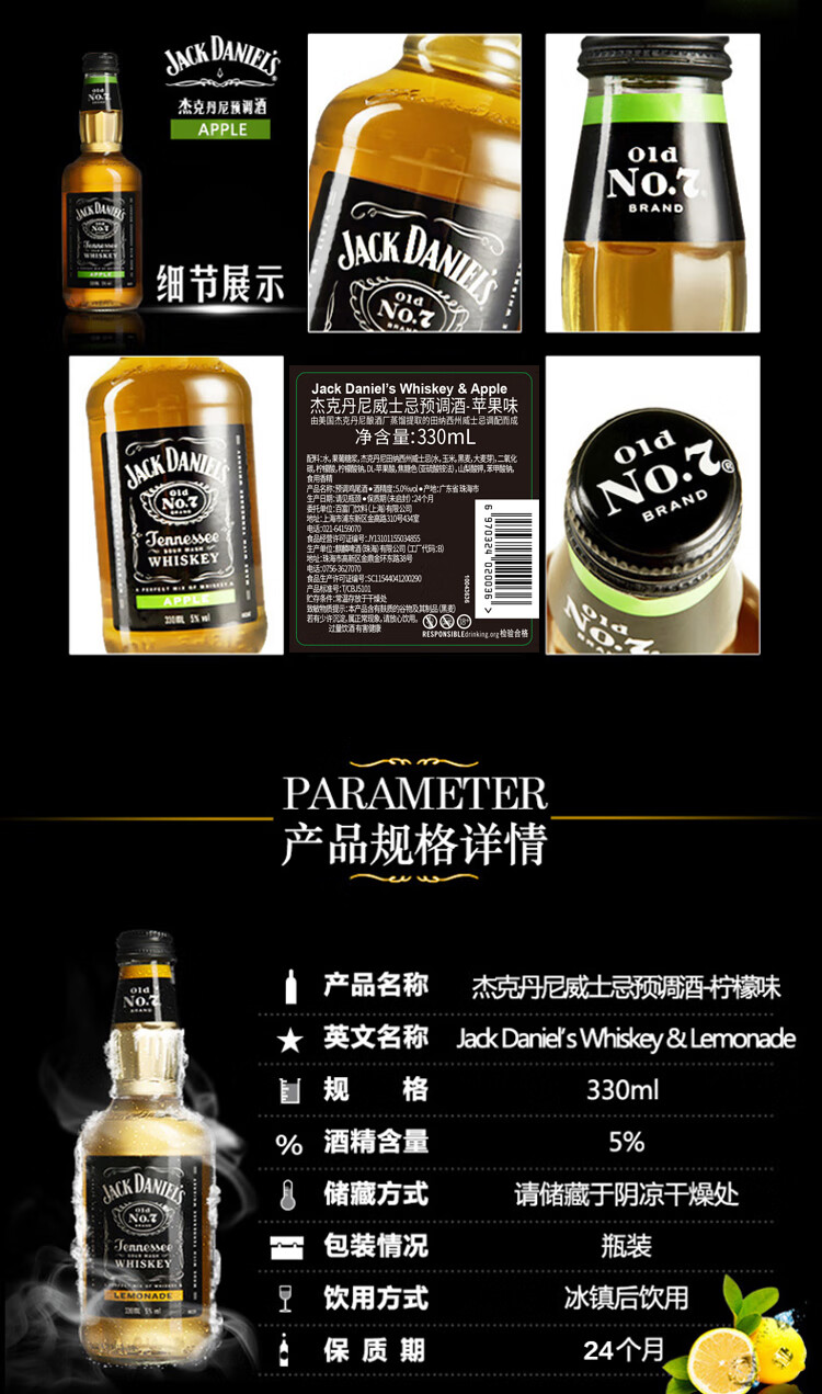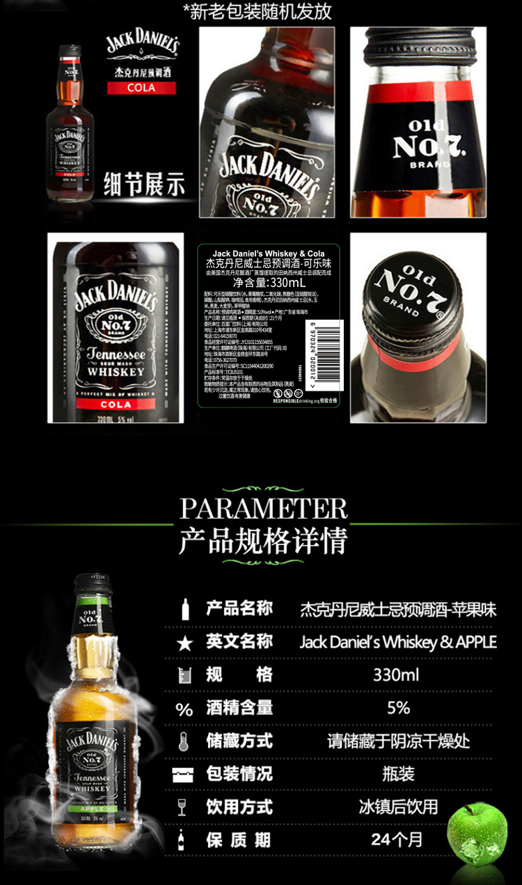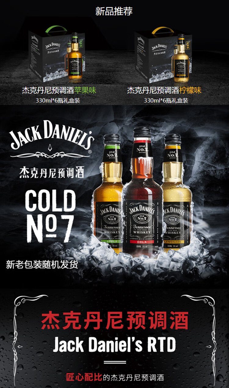 国产/进口:国产;产地:中国大陆;适用场景:商务宴请,家庭聚会,闺蜜私语,亲友馈赠,自斟自饮,情侣约会;包装:礼盒装;容量:200-374mL;原料:水、白砂糖、食品添加剂、食用香料、杰克丹尼田纳西州威士忌、二氧化碳等;保质期:21个月;酒精度:5%vol;存储方法:阴凉避光;容量:330mL;产品重量:3.76kg;包装清单:杰克丹尼威士忌预调酒 可乐味330ml*2瓶 杰克丹尼威士忌预调酒 苹果味330ml*2瓶 杰克丹尼威士忌预调酒 柠檬味330ml*2瓶;