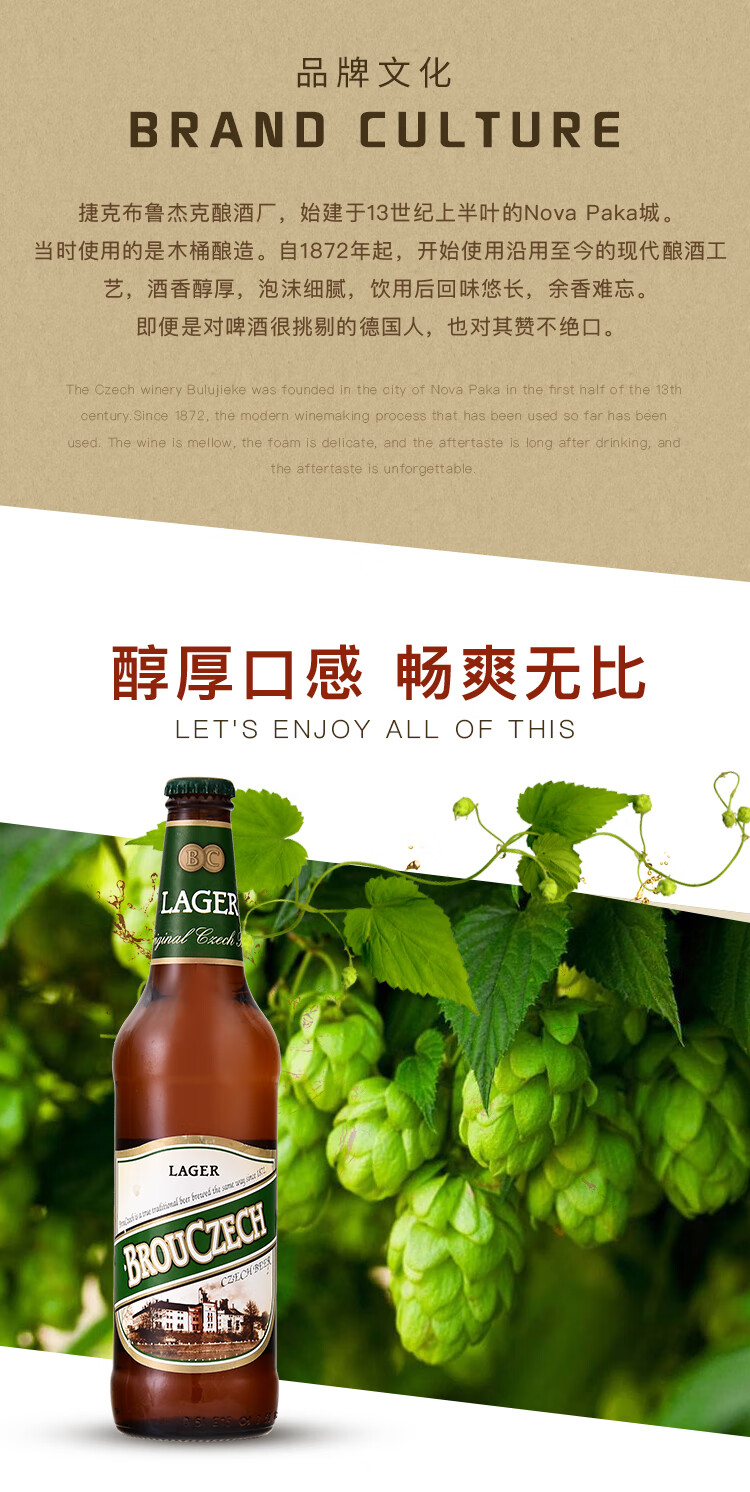 国产/进口:进口;产地:捷克;适用场景:礼节拜访,家庭聚会,自斟自饮,情侣约会,烧烤撸串,派对必备,酒吧夜店;包装:瓶装;容量:500mL;类别:黄啤酒;原料:水,大麦麦芽,白砂糖, 精选啤酒花;保质期:18个月;酒精度:5%vol;原产地:捷克;原麦汁浓度:11,6;存储方法:常温保存,请置于阴凉干燥处8-10℃饮用更佳;产品重量:15.48kg;容量:500ml;包装清单:布鲁杰克瓶装拉格啤酒500ml*20瓶 X1;