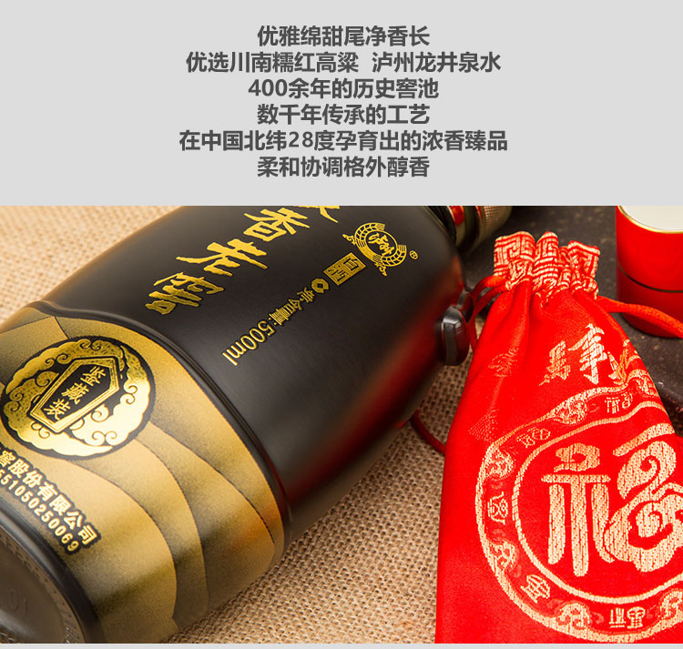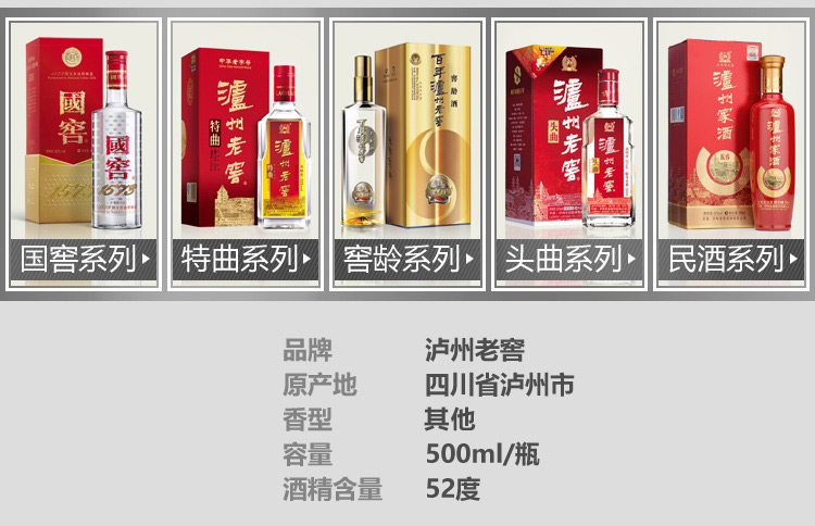 包装:整箱装;容量:500-749mL;香型:其它;产地:四川;度数:50度及以上;酒精度:52%vol;容量:500ml*6;产品重量:8340g;包装清单:500ml*6瓶;
