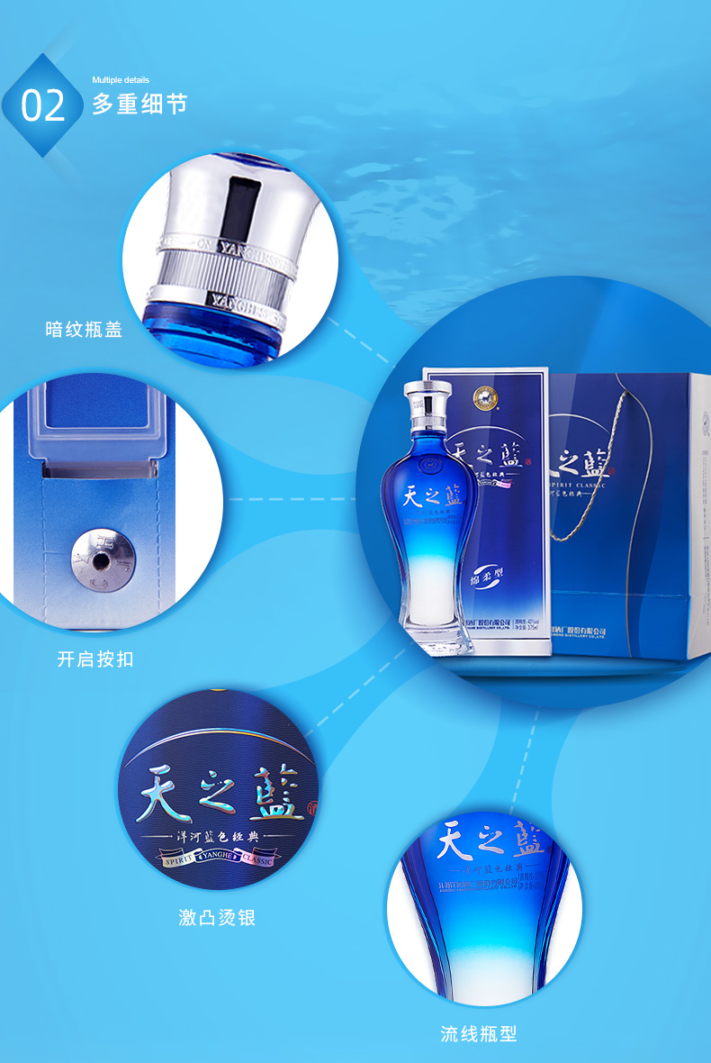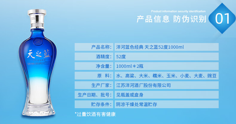 包装:其它;容量:750mL及以上;香型:浓香型;产地:江苏;度数:50度及以上;酒精度:52%vol;容量:1000ml;产品重量:6035g;包装清单:洋河 蓝色经典天之蓝52度 1000ml*2瓶(内含手提袋俩只);