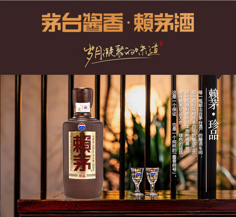 包装:瓶装;容量:376-499mL;香型:酱香型;度数:50度及以上;产地:贵州;酒精度:53%vol;产品重量:0g;容量:500;包装清单:茅台 赖茅珍品53度500ml*1瓶;