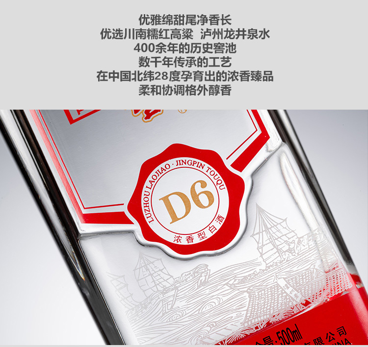 包装:整箱装;容量:500-749mL;香型:浓香型;产地:四川;度数:50度及以上;酒精度:52%vol;容量:500ml*6;产品重量:9360g;包装清单:精品头曲52度D6×6;
