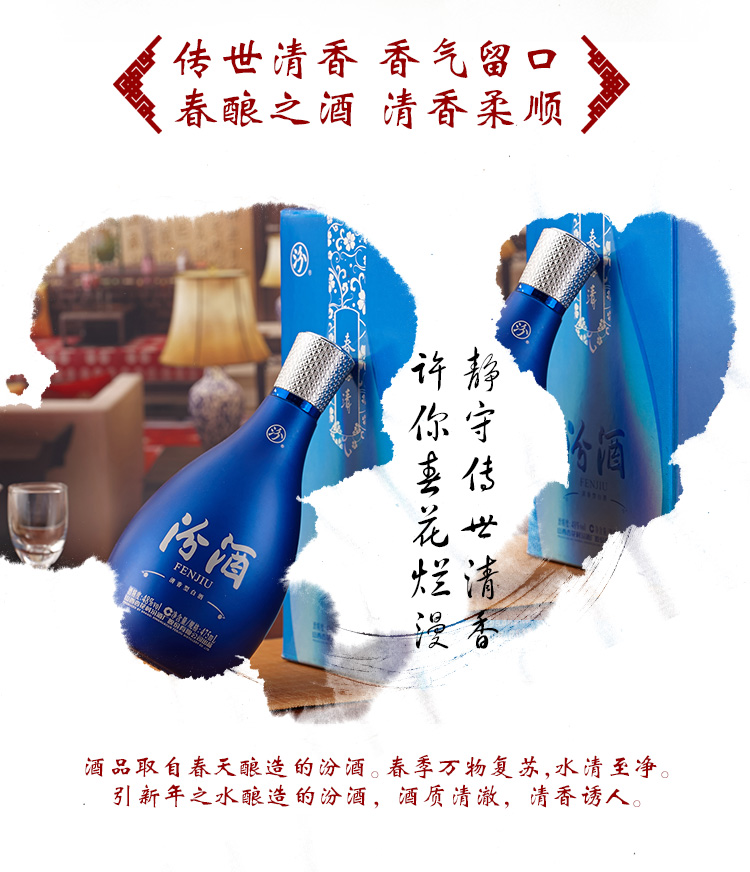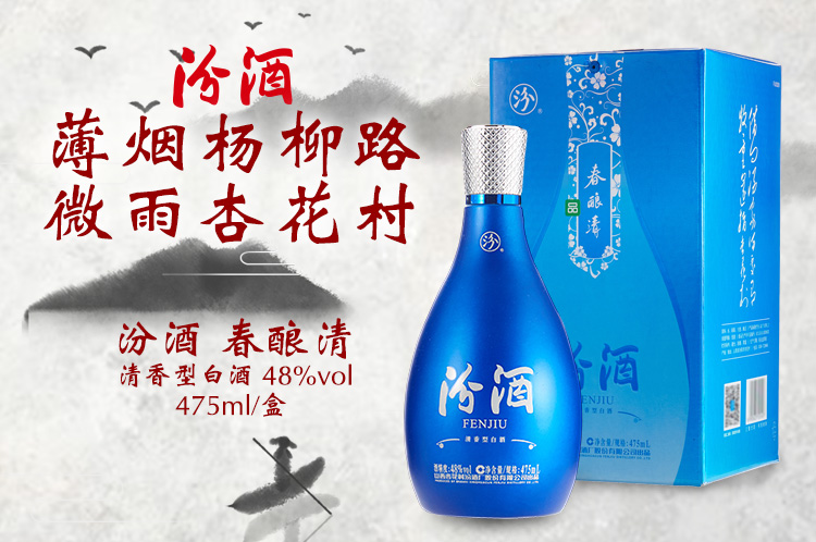 包装:瓶装;容量:376-499mL;香型:清香型;度数:40-49度;容量:475ml;产品重量(kg):1.2;包装:单瓶;存储方法:常温;酒精度:48;香型:清香型;等级:优级;省份:山西;包装清单:汾酒春酿*1;