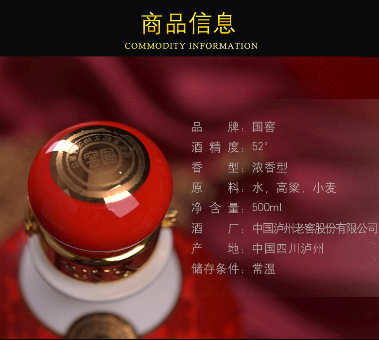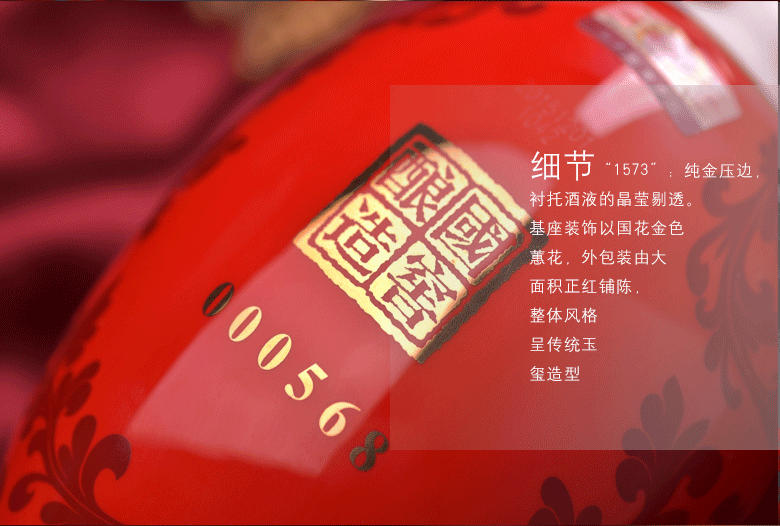 包装:瓶装;容量:500-749mL;香型:浓香型;产地:四川;度数:50度及以上;酒精度:52%vol;容量:500ml;产品重量:1675g;包装清单:泸州老窖国窖1573鸿运568 52度 500ml×1;