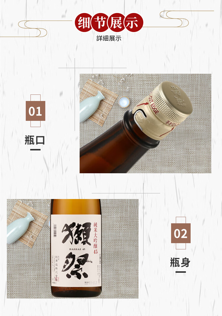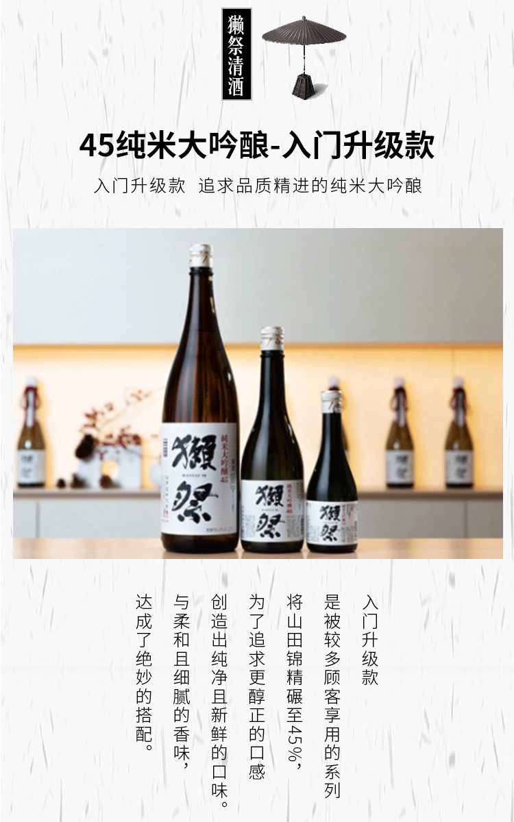适用场景:商务宴请,亲友馈赠,自斟自饮,家庭聚会;包装:其它;容量:1L及以上;国产/进口:进口;产地:日本;原料:水、大米、米麴;保质期:长期有效;酒精度:16%vol;存储方法:请放置阴凉避光处;产品重量:0kg;包装清单:獭祭 清酒 纯米大吟酿45 1.8L×1;