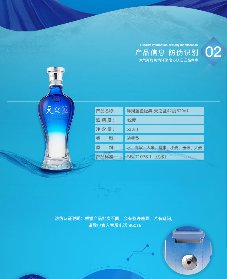 包装:瓶装;容量:500-749mL;香型:浓香型;产地:江苏;度数:40-49度;酒精度:42%vol;容量:520;产品重量:0g;包装清单:天之蓝 42度 520ml *1;