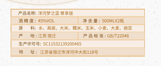 包装:礼盒装;容量:500-749mL;香型:浓香型;产地:江苏;度数:40-49度;酒精度:45%vol;容量:500ml;产品重量:3900g;包装清单:洋河 梦之蓝 M1·精装尊享版 双瓶礼盒500ml*2瓶 45度口感绵柔浓香型白酒 送礼佳选(一盒搭配一个礼品袋);