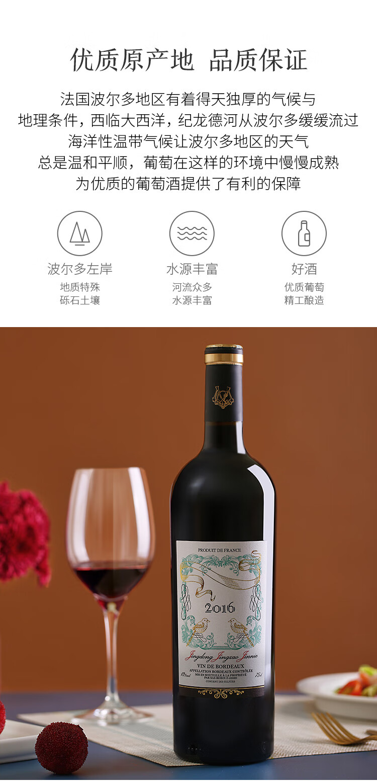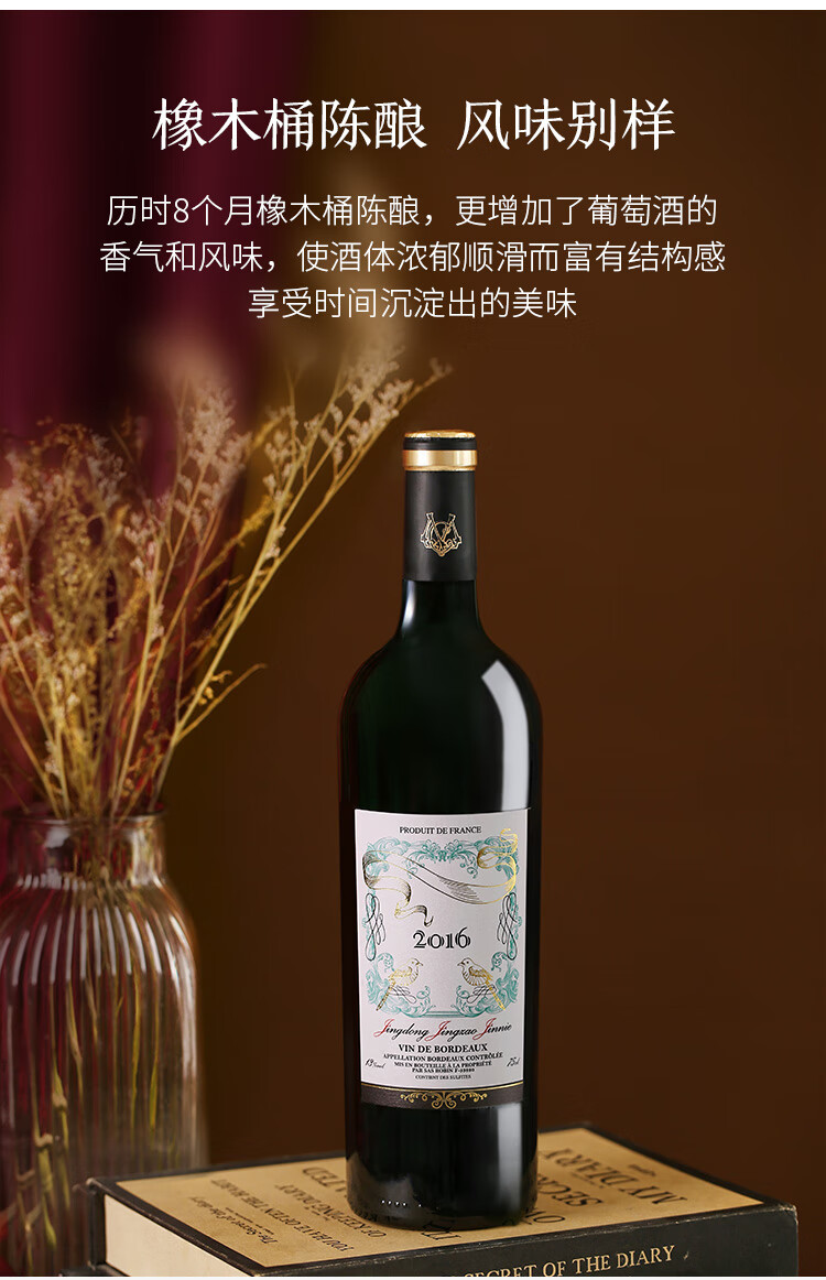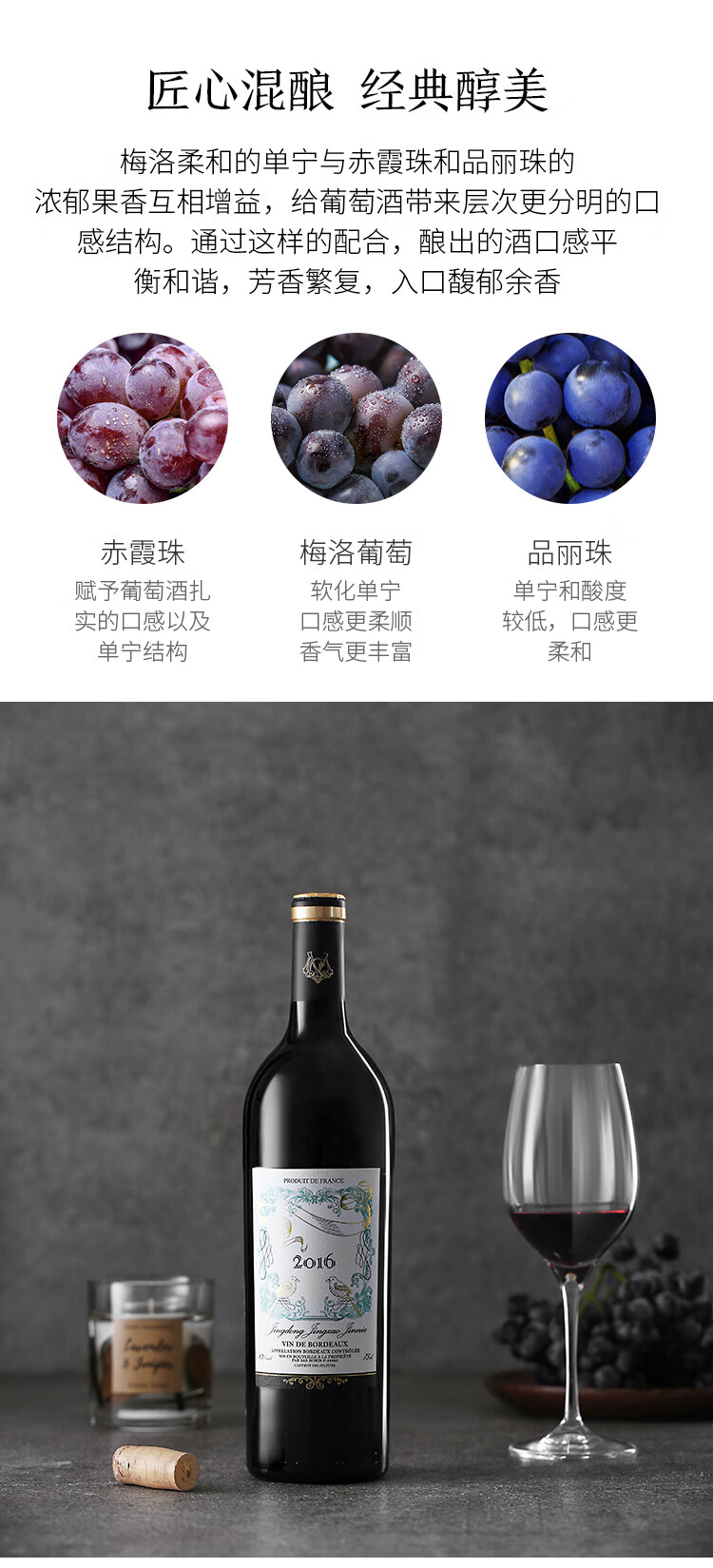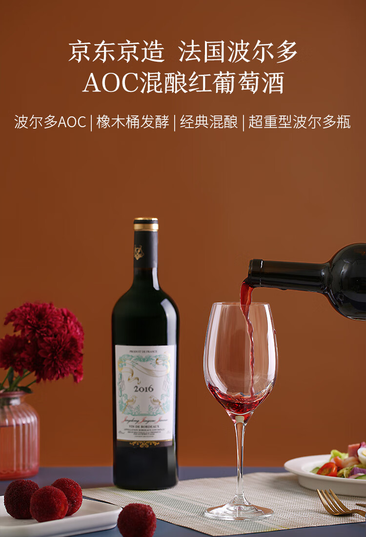 京东京造 法国波尔多进口红葡萄酒 赤霞珠梅洛品丽珠混酿 AOP/AOC 750ml 红酒单支装