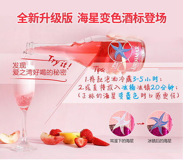 颜色:粉色;采摘年份:2019年;口感:清新;特性:普通餐酒;国产/进口:进口;适用场景:家庭聚会,礼节拜访,商务宴请,婚礼婚宴,情侣约会,自斟自饮,闺蜜私语,派对活动;包装:整箱装;酸度:中酸;类别:起泡酒/香槟;葡萄品种:其它;类型:其它;香型:果香;产地:西班牙;容量:750mL;甜度:甜型;保质期:5年;酒精度:7%vol;原产地:西班牙;存储方法:常温,阴凉平放;容量:750ml;产品重量:8.3kg;包装清单:爱之湾起泡酒甜型女士葡萄酒750ml*6支整箱组合(6倍的甜蜜)西班牙原瓶进口;