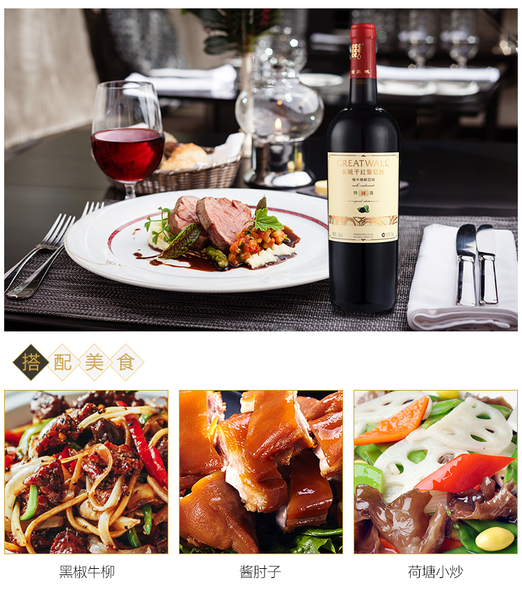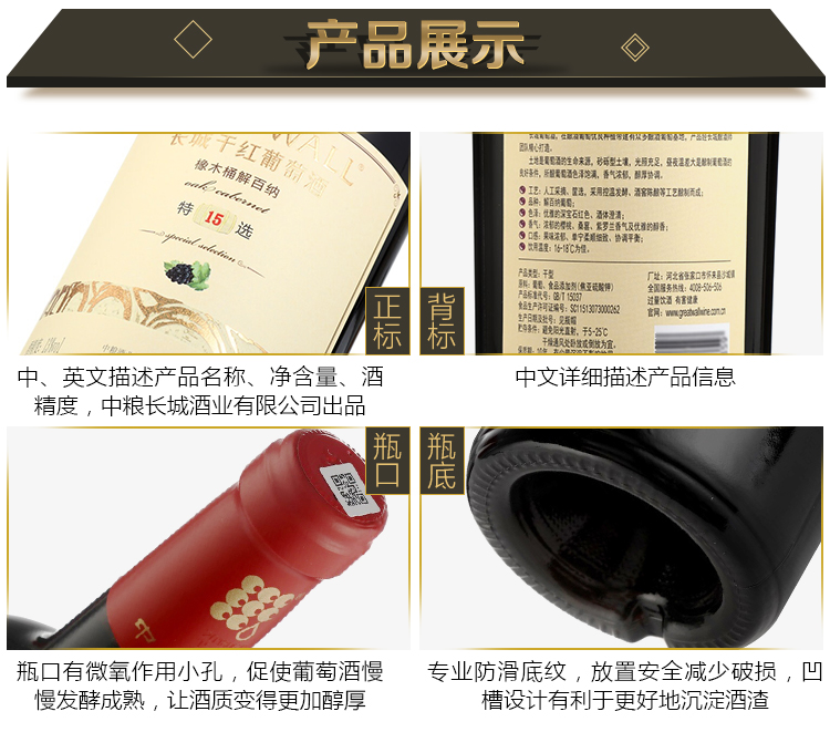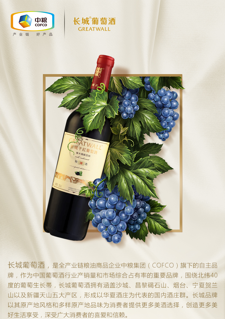 长城 特选15 橡木桶解百纳干红葡萄酒 750ml*6瓶 整箱装 中粮出品