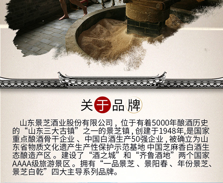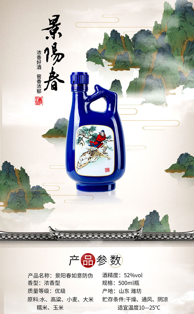 包装:整箱装;容量:500-749mL;香型:浓香型;产地:山东;度数:50度及以上;酒精度:52%vol;容量:500ml;产品重量:8070g;包装清单:景芝 白酒 景阳春 52度 500ml*6瓶 整箱装;