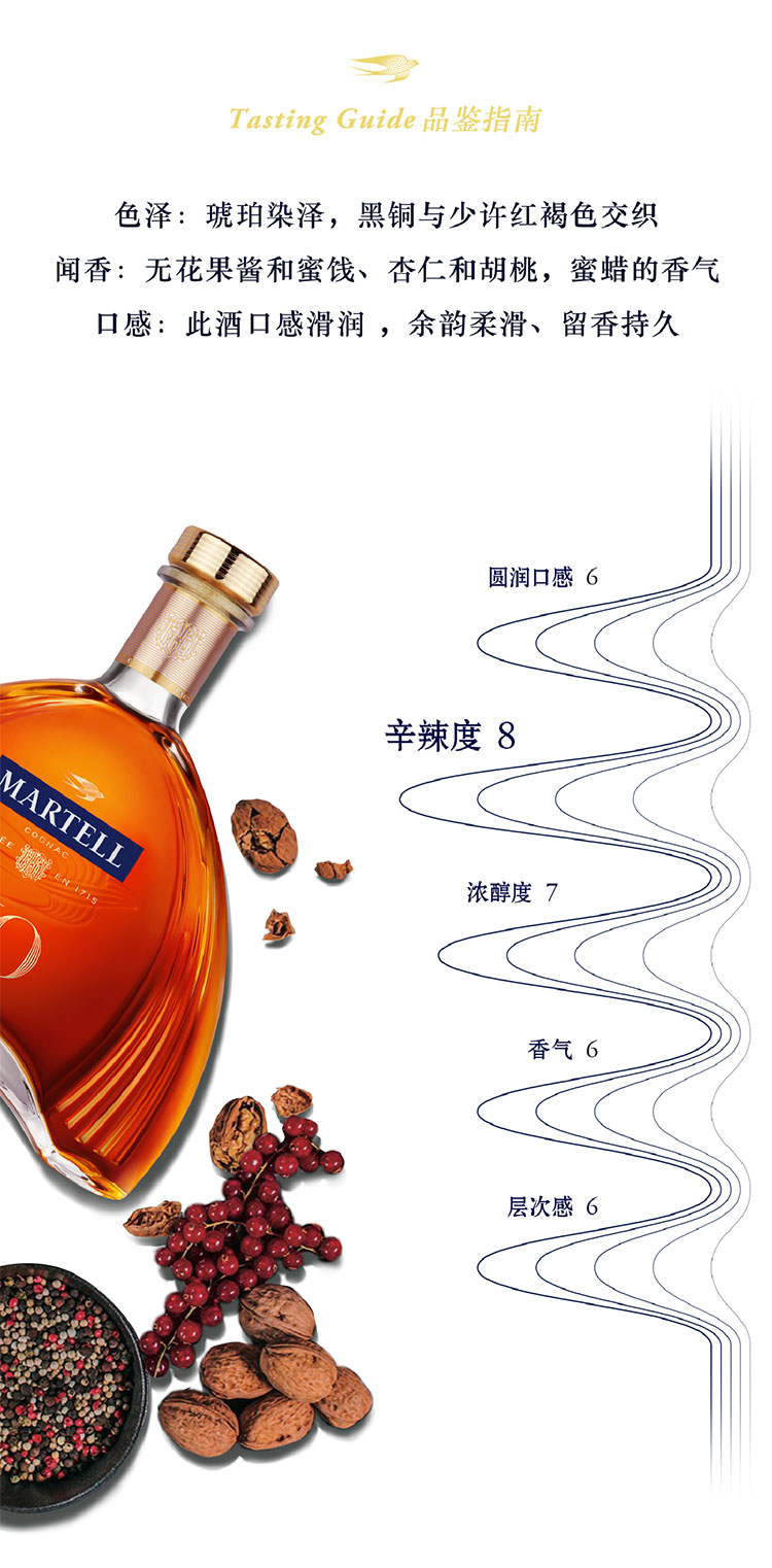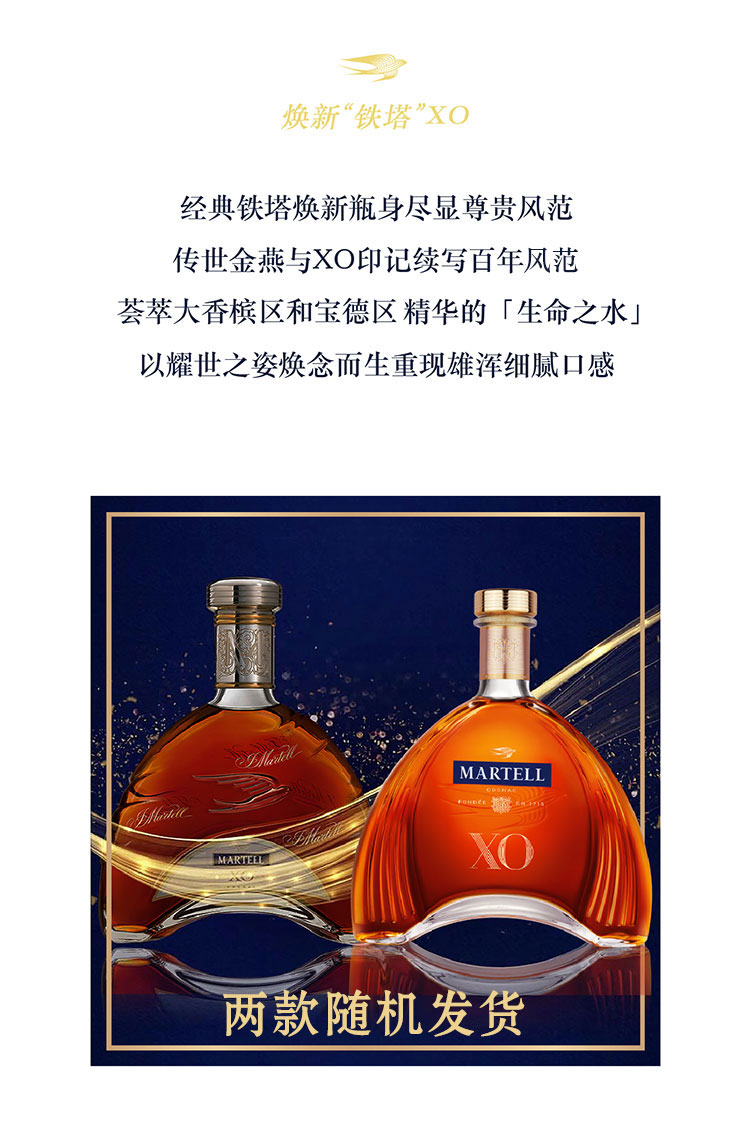 特性:XO;国产/进口:进口;产地:法国;适用场景:自斟自饮,情侣约会,商务宴请,家庭聚会;包装:瓶装;容量:200-374mL;原料:葡萄、水、焦糖色;保质期:无;酒精度:40%vol;存储方法:常温避光;产品重量:1kg;容量:700mL;包装清单:马爹利(Martell)洋酒 XO 干邑 白兰地 350ml*1;