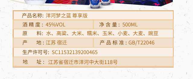 包装:瓶装;容量:500-749mL;香型:浓香型;产地:江苏;度数:40-49度;酒精度:45%vol;容量:500ml;产品重量:2150g;包装清单:洋河 梦之蓝 M1·精装尊享版 单盒装 500ml 45度口感绵柔浓香型白酒 送礼佳选;
