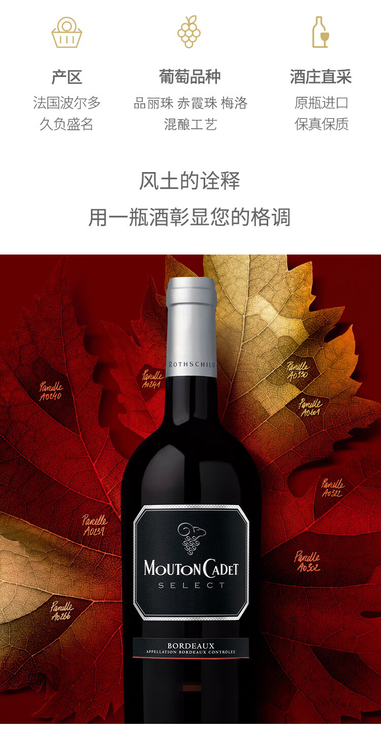木桐嘉棣精选红葡萄酒 750ml 法国原瓶进口红酒