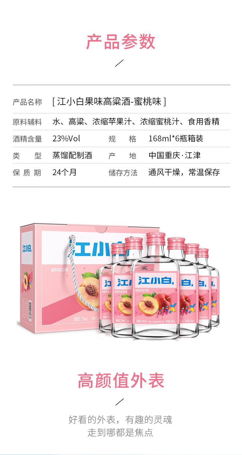 包装:礼盒装;容量:375mL及以下;香型:其它;产地:重庆;度数:35度以下;酒精度:23%vol;容量:1008ml;产品重量:2500g;包装清单:无;