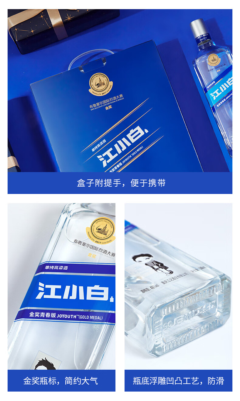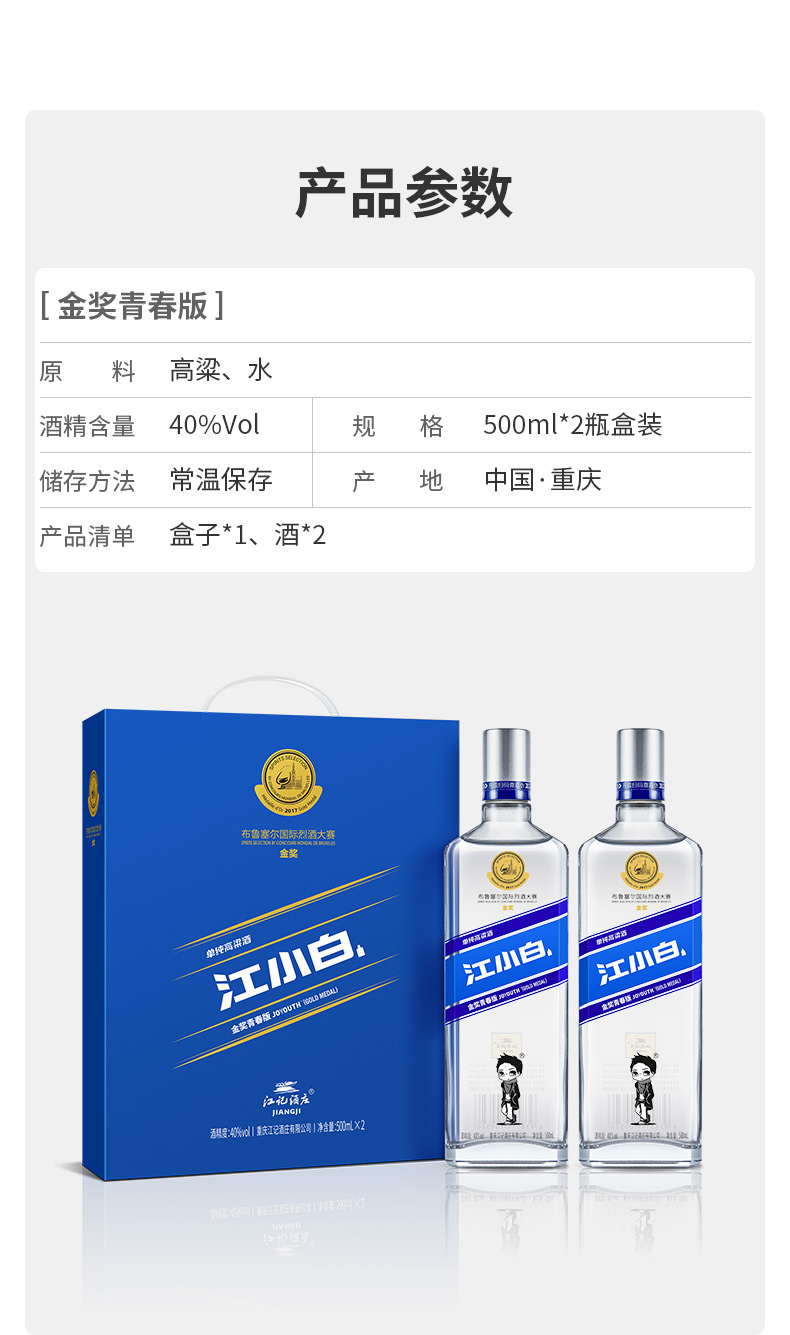 包装:礼盒装;容量:500-749mL;香型:清香型;产地:重庆;度数:40-49度;酒精度:40%vol;容量:1000ml;产品重量:2580g;包装清单:无;
