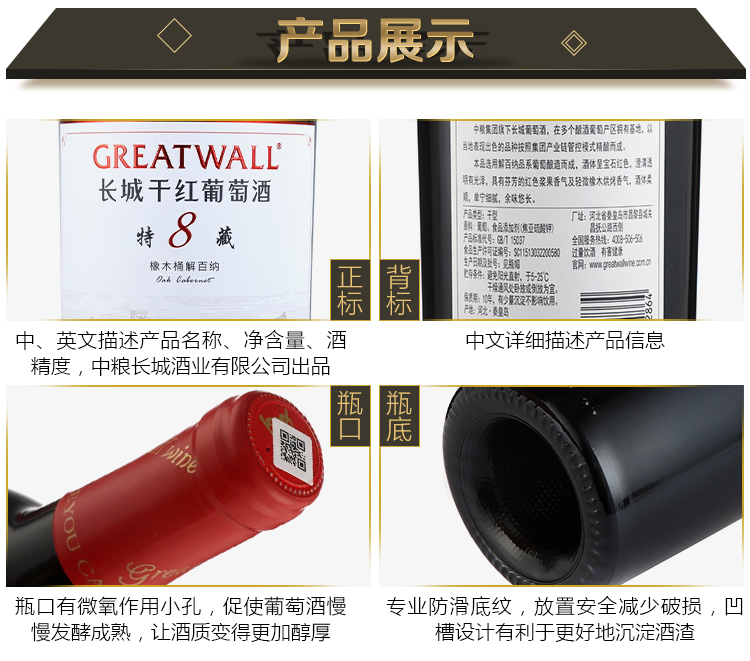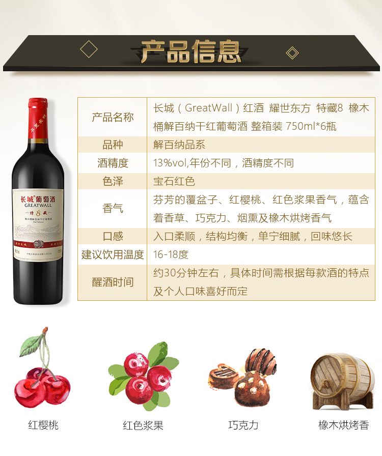 长城 耀世东方 特藏8年橡木桶解百纳干红葡萄酒 750ml*6瓶 整箱装 中粮出品