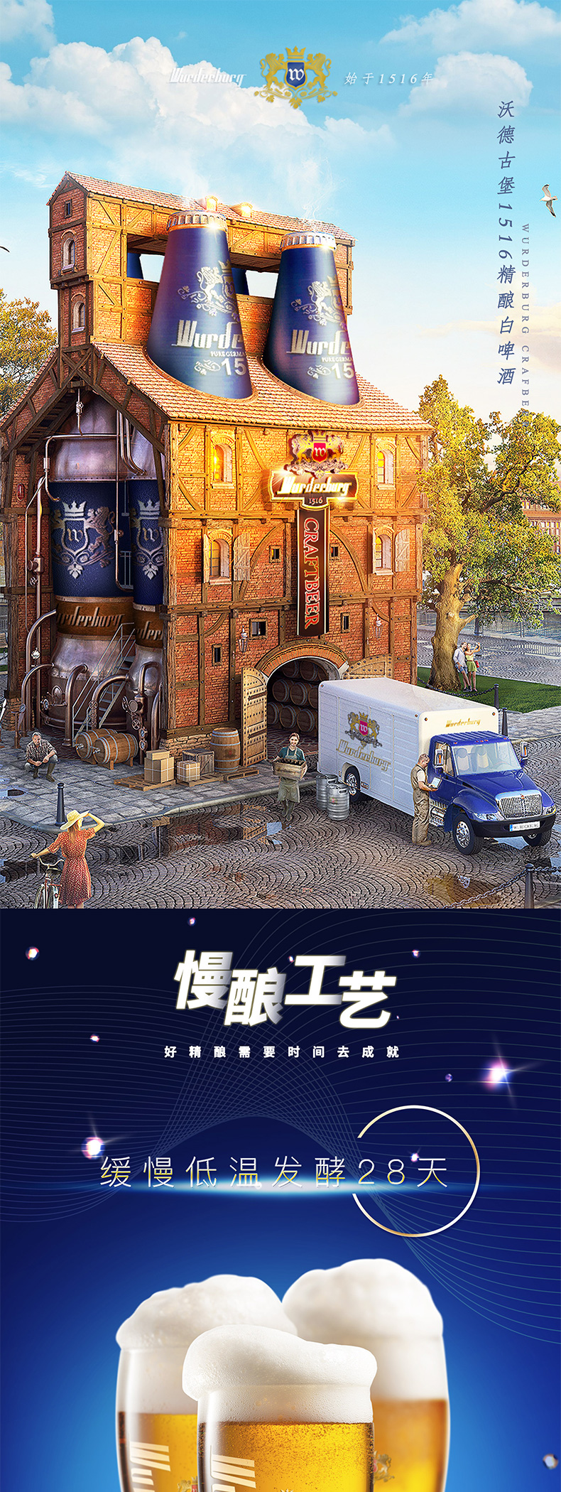 沃德古堡(Wurderburg)德国啤酒工艺精酿小麦白啤酒500ml*12瓶整箱瓶装国产 夏日酷爽麦香浓郁自然浑浊