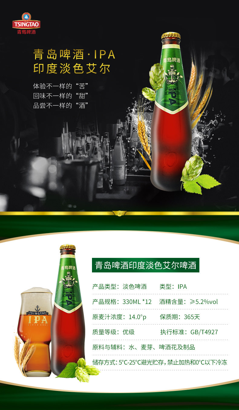 国产/进口:国产;产地:中国大陆;适用场景:家庭聚会,礼节拜访,情侣约会,自斟自饮,派对必备,烧烤撸串,酒吧夜店;包装:组合装;容量:500mL以上;类别:精酿;容量:500ml*12;产品重量(kg):7.8;包装:组合装;存储方法:常温,避光;原料:水,麦芽,啤酒花及制品;原麦汁浓度:14°;酒精度:≥5.2%vol;国产/进口:国产;保质期:365天;原产地:中国;类别:精酿;包装清单:青岛啤酒(TsingTao)IPA精酿 14度 330ml*12听整箱装;