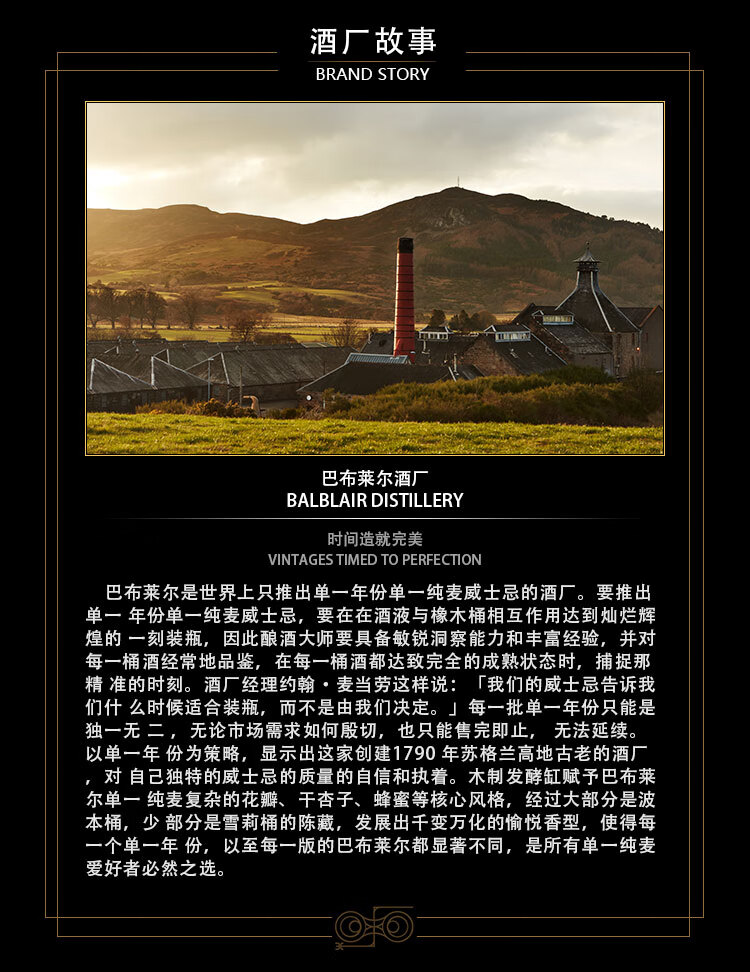 类型:单一麦芽威士忌;产地:苏格兰;适用场景:自斟自饮,亲友馈赠,家庭聚会,商务宴请,情侣约会,闺蜜私语;包装:瓶装;容量:700-999mL;阶段:进阶优选;原料:水,大麦;保质期:长期;酒精度:46%vol;存储方法:常温保存;产品重量:1.6kg;容量:700mL;包装清单:酒X1,纸盒包装X1;