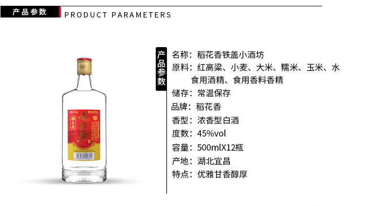 包装:整箱装;容量:500-749mL;香型:浓香型;产地:湖北;度数:40-49度;酒精度:45%vol;容量:500;产品重量:12160g;包装清单:外箱*1 500ml*12瓶;