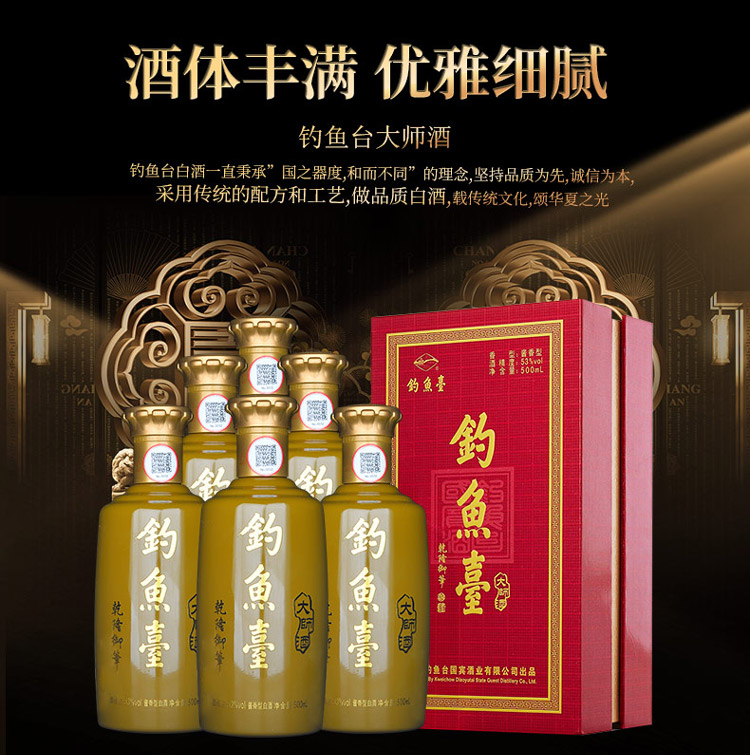 包装:整箱装;容量:500-749mL;香型:酱香型;产地:贵州;度数:50度及以上;酒精度:53%vol;容量:500ml*6瓶;产品重量:7200g;包装清单:整箱;