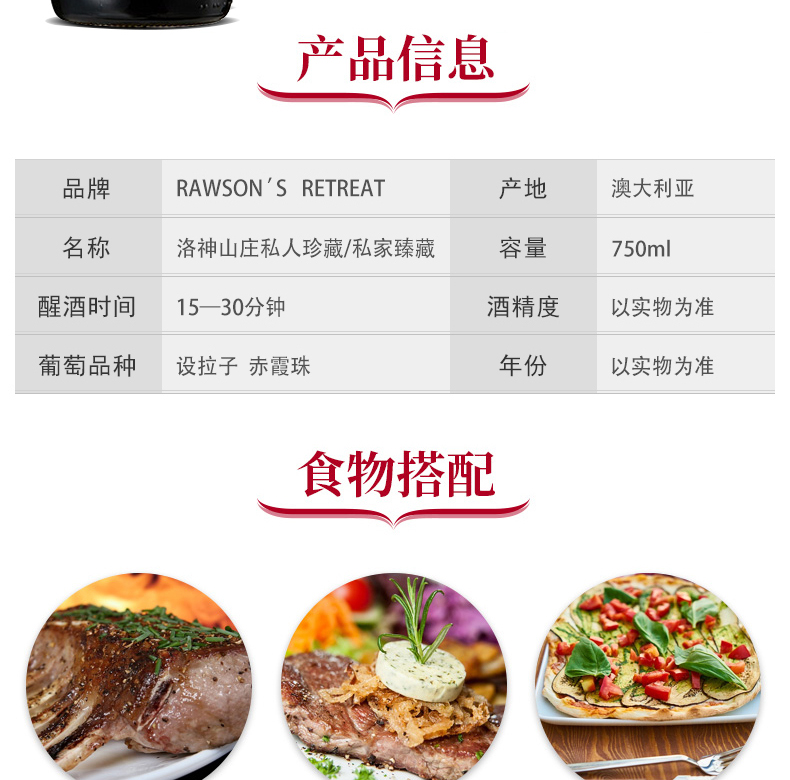 颜色:其它;口感:柔和;特性:普通餐酒;国产/进口:进口;适用场景:家庭聚会,礼节拜访,商务宴请,婚礼婚宴,情侣约会,自斟自饮,闺蜜私语,派对活动;包装:整箱装;类别:红葡萄酒;葡萄品种:赤霞珠(Cabernet Sauvignon),西拉/设拉子(Syrah/Shiraz);产地:澳大利亚;容量:750mL;甜度:干型;保质期:3650天;酒精度:以实物为准;原产地:澳大利亚;存储方法:避免阳光直射,置于阴凉干燥处保存,倒放或卧放为宜。;产品重量:7.35kg;容量:750ml;包装清单:澳洲原瓶进口红酒 奔富 洛神山庄私人珍藏/私家臻藏 红葡萄酒 750ml*6瓶 整箱;