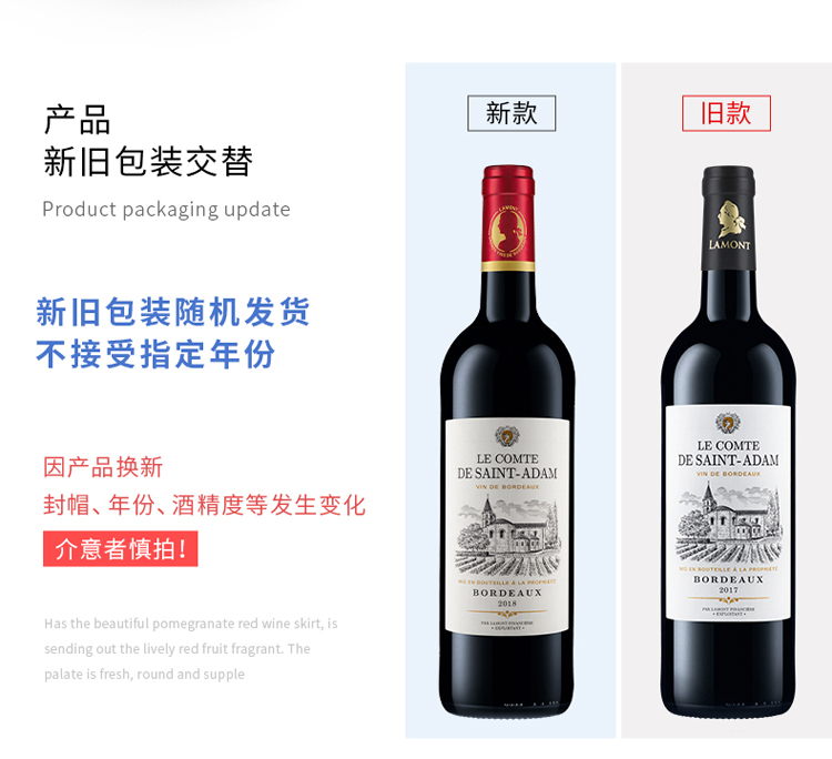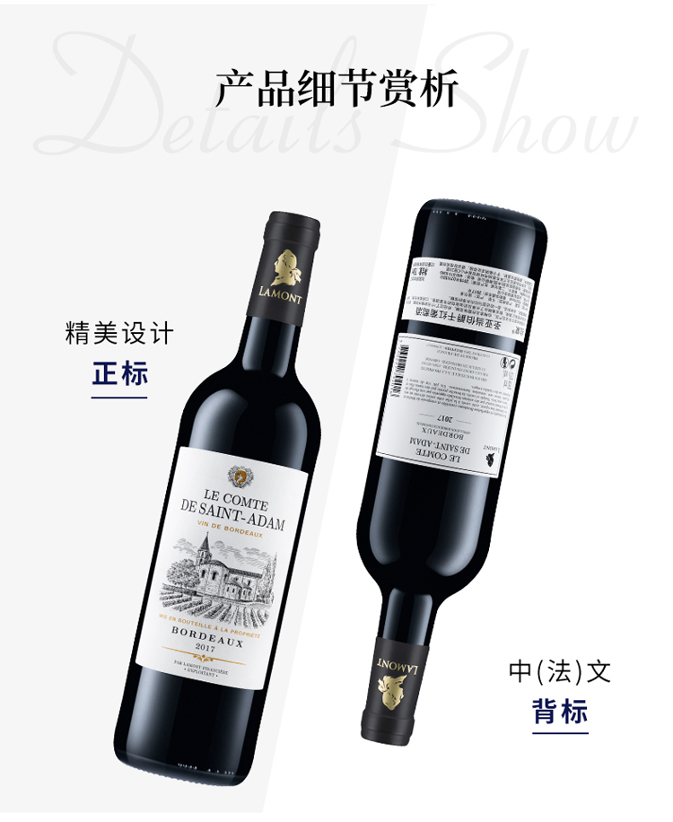 拉蒙 圣亚当伯爵干红葡萄酒 750ml*6瓶 整箱装 法国原瓶进口红酒 波尔多AOC