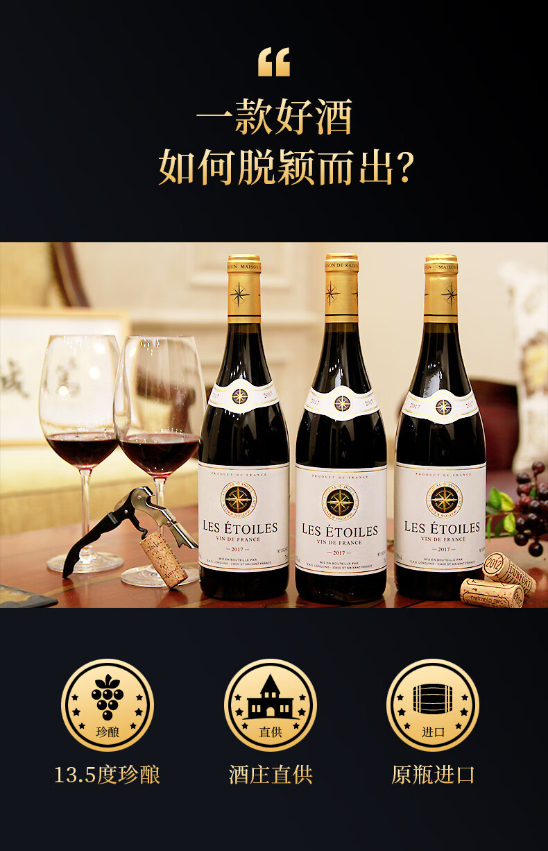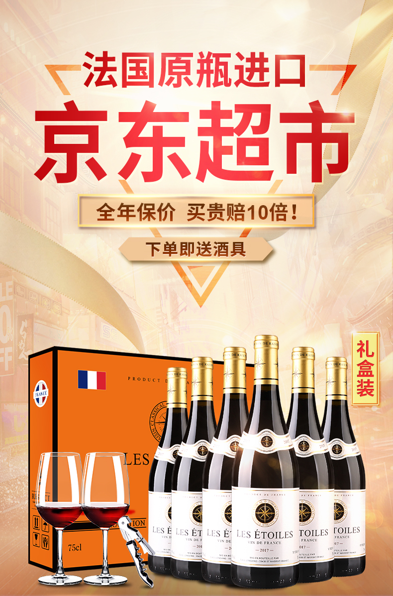 法国进口红酒 布多格金星红葡萄酒礼盒750ml整箱6支装
