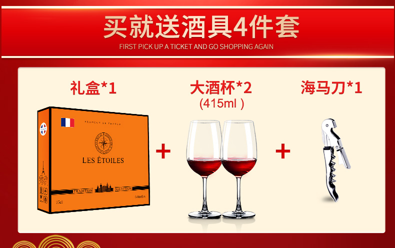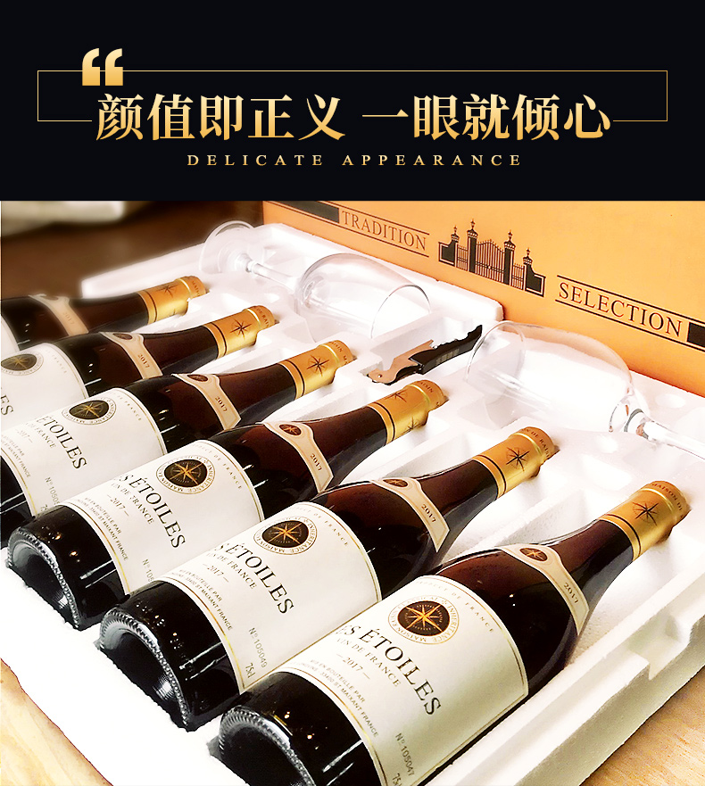 口感:柔和;特性:普通餐酒;国产/进口:进口;适用场景:家庭聚会,礼节拜访,商务宴请,婚礼婚宴,情侣约会,自斟自饮,闺蜜私语,派对活动,收藏;包装:整箱装;酸度:低酸;类别:红葡萄酒;葡萄品种:赤霞珠(Cabernet Sauvignon),梅洛(Merlot);产地:法国;容量:750mL;甜度:半干型;保质期:3650天;酒精度:13.5;原产地:法国;存储方法:避光存放;容量:750ml;产品重量:8kg;包装清单:红酒*6、高脚杯*2、海马刀*1;