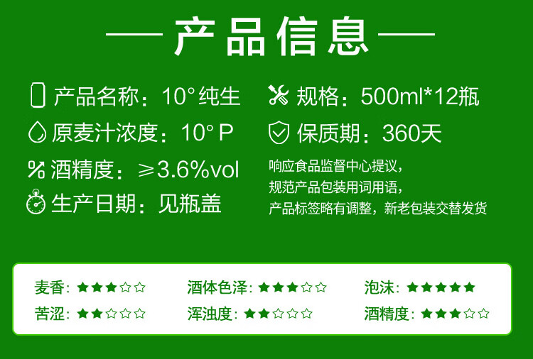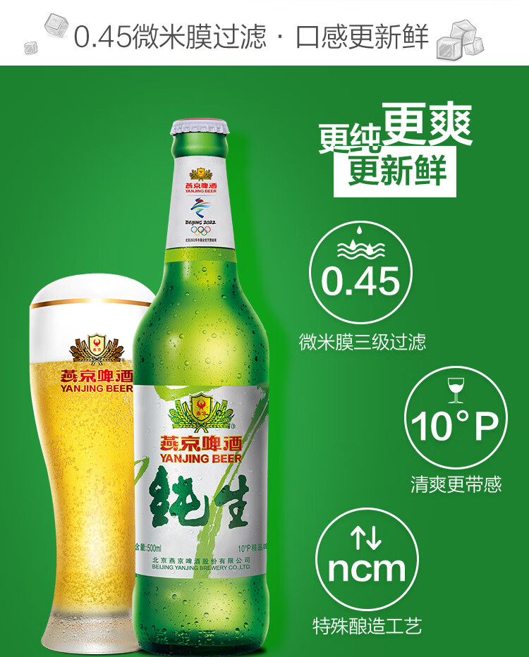 国产/进口:国产;产地:中国大陆;适用场景:礼节拜访,家庭聚会,自斟自饮,情侣约会,烧烤撸串,派对必备,酒吧夜店;包装:瓶装;容量:500mL;类别:黄啤酒;原料:水,麦芽,大米,啤酒花;保质期:360天;酒精度:≥3.6%vol;原产地:中国大陆;原麦汁浓度:10°P;存储方法:5℃-25℃避光贮存;容量:500ml;产品重量:11.2kg;包装清单:燕京啤酒 10度 纯生啤酒 500ml*12瓶 整箱装;