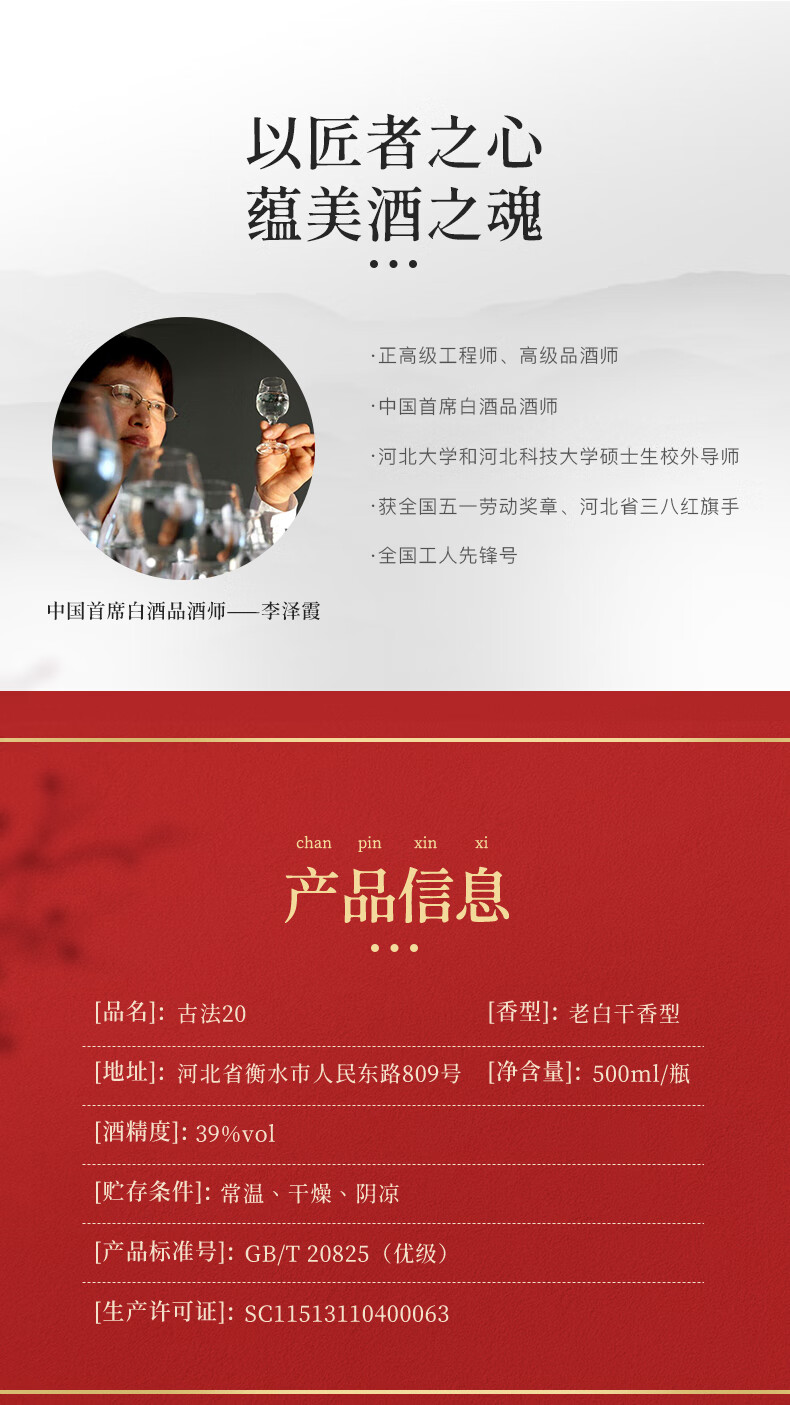 包装:整箱装;容量:500-749mL;香型:老白干香型;产地:河北;度数:35-39度;酒精度:39%vol;容量:500ml*4;产品重量:7380g;包装清单:1;