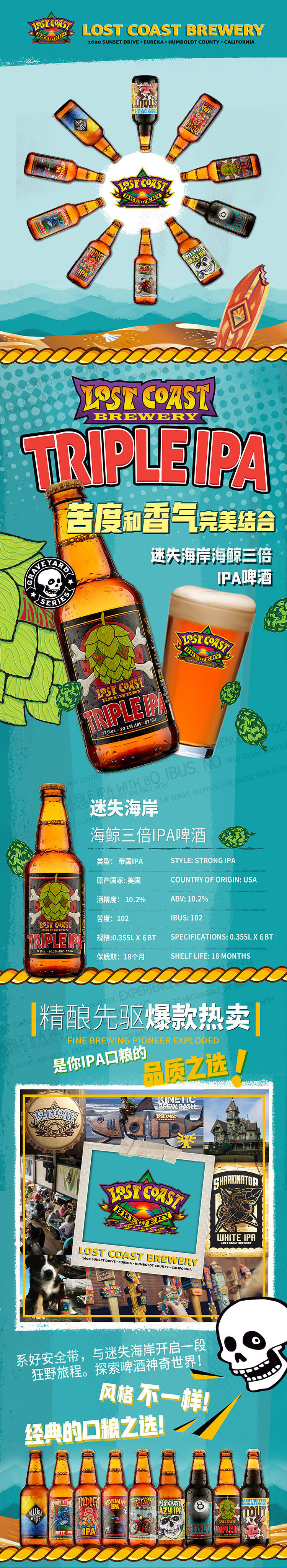 国产/进口:进口;产地:美国;适用场景:家庭聚会,礼节拜访,情侣约会,自斟自饮,派对必备,烧烤撸串,酒吧夜店;包装:组合装;容量:331-499mL;类别:精酿;原料:水、麦芽、啤酒花、酵母;保质期:18个月;酒精度:10.2% vol;原产地:美国;原麦汁浓度:20°P;存储方法:存放于阴凉干燥处,请勿倒置,冰镇后饮用更佳;容量:355ml;产品重量:3.56kg;包装清单:迷失海岸 (LOST COAST) 海鲸三倍IPA啤酒355ml*6瓶;