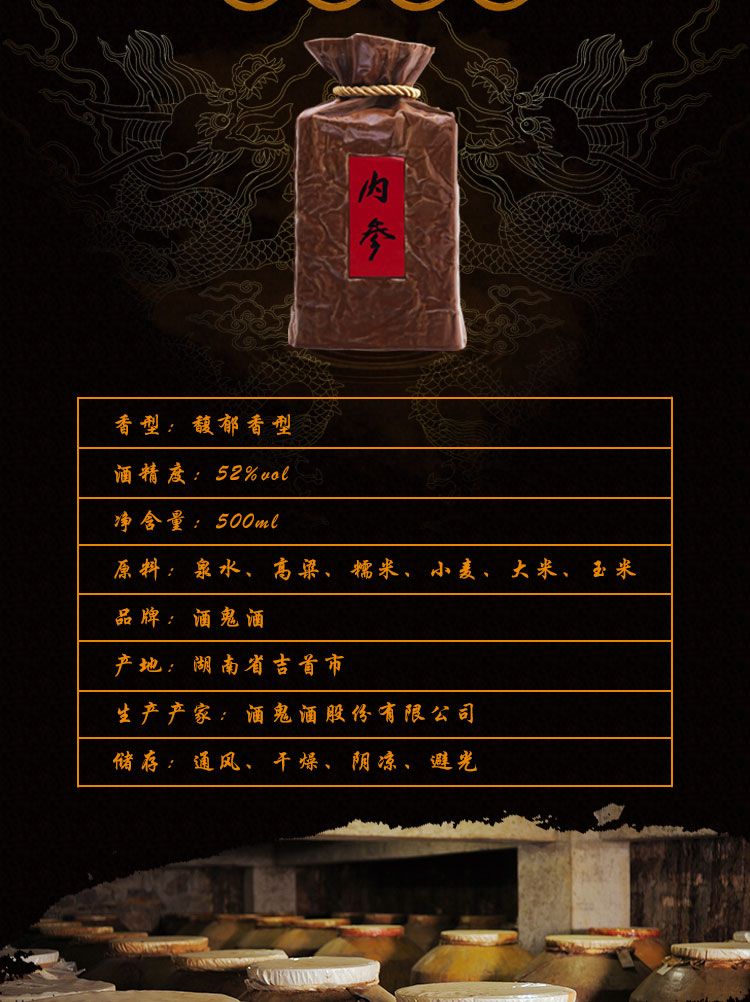 包装:整箱装;容量:376-499mL;香型:其它;度数:50度及以上;香型:其它;产地:湖南;酒精度:52%vol;包装:整箱装;产品重量:10000g;容量:500ml;包装清单:酒鬼 白酒 内参 馥郁香型 52度 500ml*6瓶 整箱装;